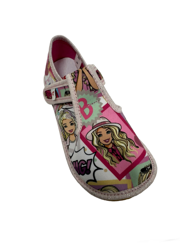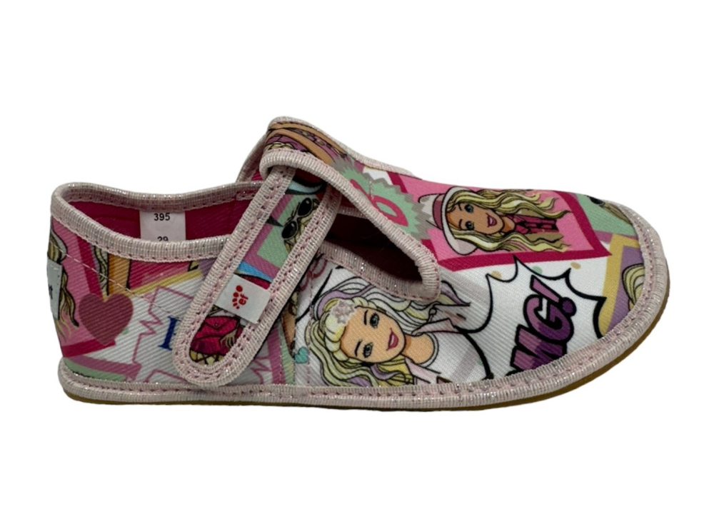 Barefoot papučky od značky EF so spevnenou pätou. Sú veľmi ľahučké a ohybné pozdĺžne aj priečne. Zatvorená predná časť chráni nôžky pred zakopnutím a zároveň poskytuje dostatok priestoru pre prsty. Majú tenkú, gumenú 2 mm podrážku s nulovým dropom (medzi pätou a špičkou nie je výškovo žiaden rozdiel, podrážka je teda úplne plochá a chodidlo je rovnako vysoko od zeme v päte aj špičke). Sedia na normálne široké nôžky a vďaka suchému zipsu sa dajú pekne utiahnuť aj na užšie členky.