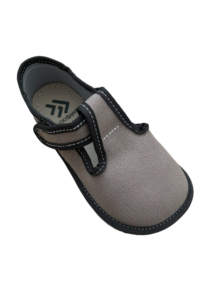 Barefoot papučky od značky EF so spevnenou pätou. Sú veľmi ľahučké a ohybné pozdĺžne aj priečne. Zatvorená predná časť chráni nôžky pred zakopnutím a zároveň poskytuje dostatok priestoru pre prsty. Majú tenkú, gumenú 2 mm podrážku s nulovým dropom. Sedia na normálne široké až užšie nôžky a vďaka suchému zipsu sa dajú pekne utiahnuť aj na úzke členky.