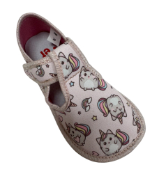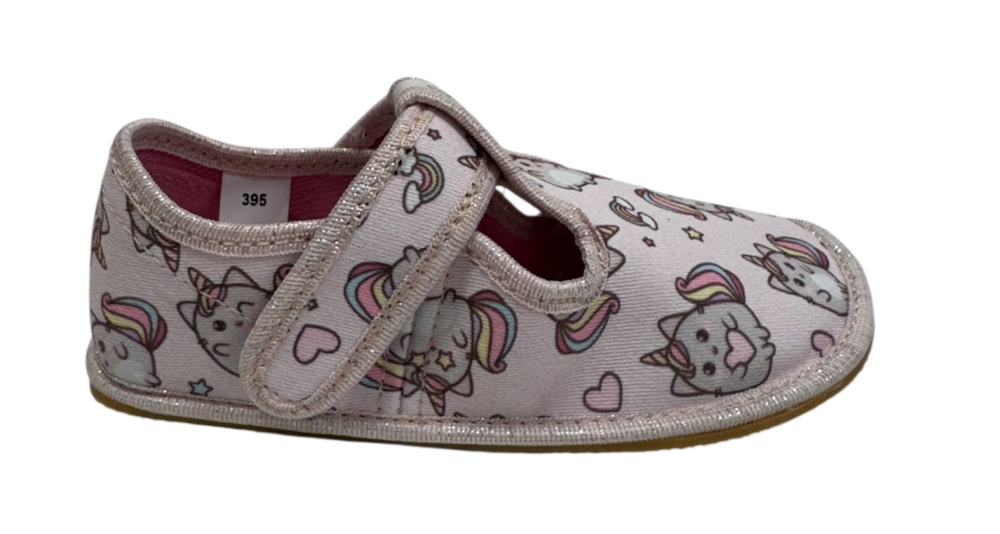 Barefoot papučky od značky EF so spevnenou pätou. Sú veľmi ľahučké a ohybné pozdĺžne aj priečne. Zatvorená predná časť chráni nôžky pred zakopnutím a zároveň poskytuje dostatok priestoru pre prsty. Majú tenkú, gumenú 2 mm podrážku s nulovým dropom (medzi pätou a špičkou nie je výškovo žiaden rozdiel, podrážka je teda úplne plochá a chodidlo je rovnako vysoko od zeme v päte aj špičke). Sedia na normálne široké nôžky a vďaka suchému zipsu sa dajú pekne utiahnuť aj na užšie členky.