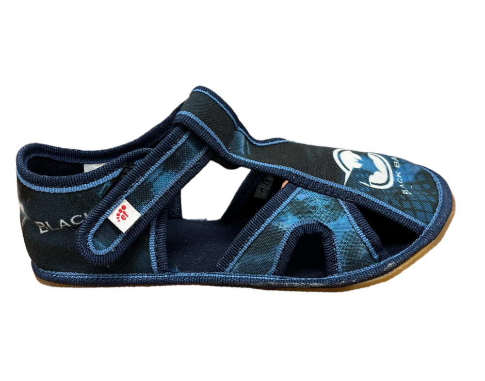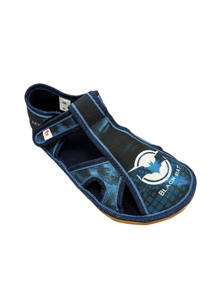 Polootvorené Barefoot papučky od značky EF sú veľmi ľahučké a ohybné pozdĺžne aj priečne. Zatvorená predná časť chráni nôžky pred zakopnutím a zároveň poskytuje dostatok priestoru pre prsty. Papučky sú po bokoch otvorené, čo umožňuje vetranie nožičiek. Majú tenkú, gumenú 2 mm podrážku s nulovým dropom. Sedia na normálne široké až užšie nôžky a vďaka suchému zipsu sa dajú pekne utiahnuť aj na úzke členky. Rovná, vnútorná stielka nie je vyberateľná.