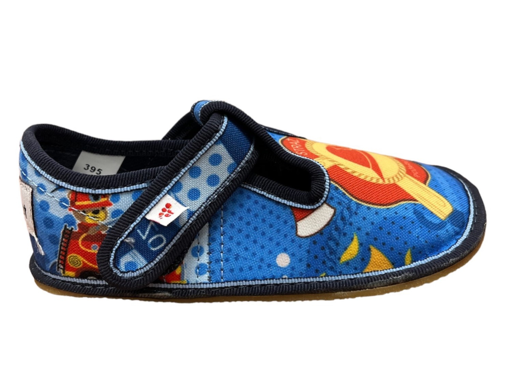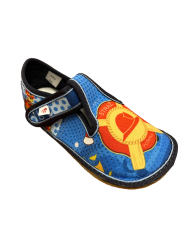Barefoot papučky od značky EF so spevnenou pätou. Sú veľmi ľahučké a ohybné pozdĺžne aj priečne. Zatvorená predná časť chráni nôžky pred zakopnutím a zároveň poskytuje dostatok priestoru pre prsty. Majú tenkú, gumenú 2 mm podrážku s nulovým dropom. Sedia na normálne široké nôžky a vďaka suchému zipsu sa dajú pekne utiahnuť aj na úzke členky. Vo vnútri sa nachádza vyberateľná netvarovaná stielka.