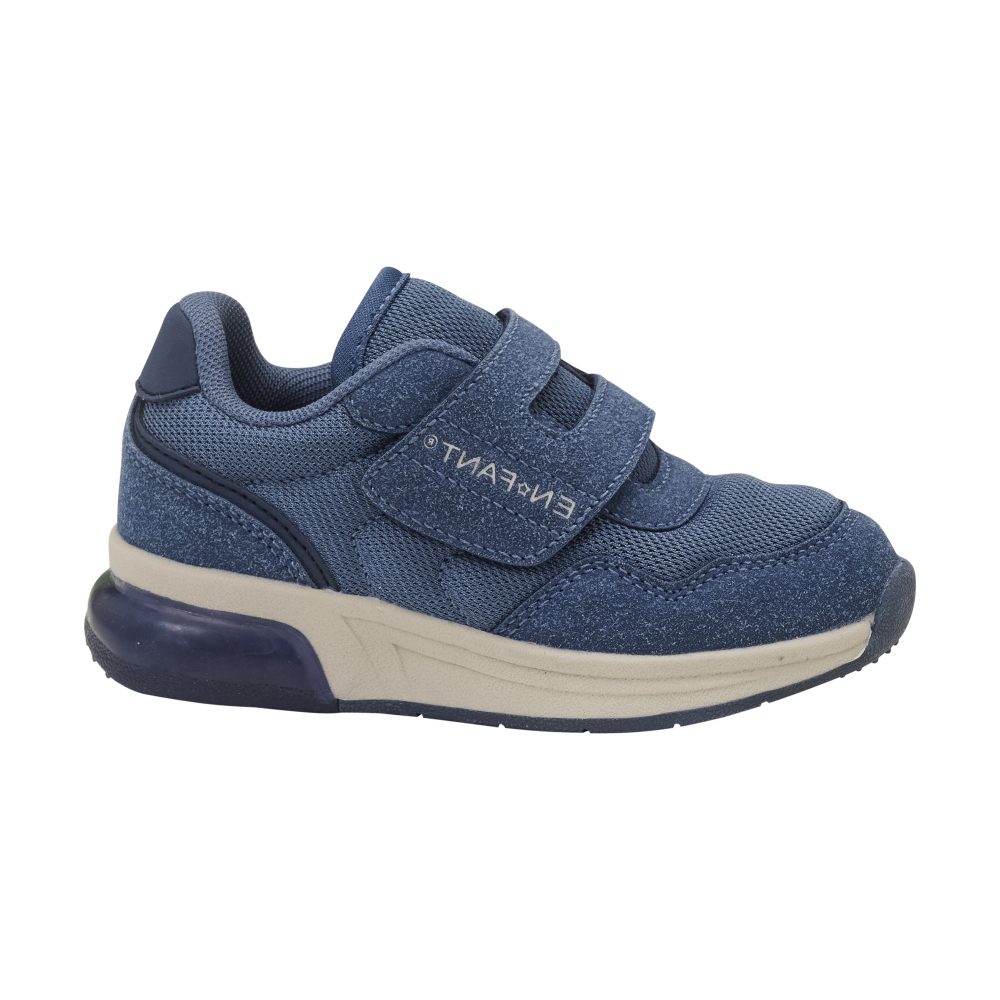 Vzdušné, ľahunké tenisky od dánskej značky EN*FANT. Sedia na normálne širokú aj širšiu nôžku a znesú aj mierne vyšší priehlavok. Zapínajú sa na hrubší, suchý zips, ktorý dobre fixuje nohu v topánkach . Majú spevnenú pätu. Textilný zvršok zabezpečuje nožičkám priedušnosť a činí topánočky ľahkými a vzdušnými, sú preto vhodné aj na športové aktivity v interiéri či exteriéri alebo na bežné nosenie do prírody, či mesta počas teplejších jarných a letných dní. Pri chôdzi tiež blikajú, čo možno považovať aj za reflexný prvok. EVA podrážka je super ľahká ohybná a tlmí nárazy pri chôdzi.