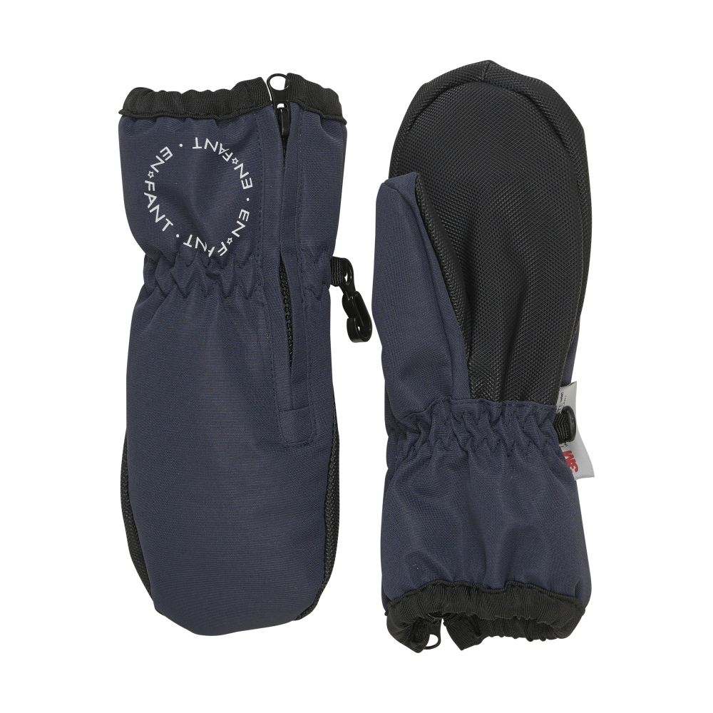 Teplé palčiaky od dánskej značky En*Fant z priedušného, vetruvzdorného a vodeodolného materiálu s vodným stĺpcom až 20.000 mm. Povrchová úprava bionic finish eco je odolná voči oderu. Rukavice sú podšité jemným flisom, vďaka čomu udržia ruky v teple a majú tiež zosilnenú pogumovanú vrstvu na končekoch prstov a na dlaniach. Sú vyrobené z recyklovaného materiálu. V prednej časti sa nachádza zips, takže sa ľahko navliekajú na ruky. Rukavice majú na prednej strane reflexné prvky a z bočnej strany praktické plastové klipy, takže sa dajú k sebe pripnúť a detičky ich tak nestratia.