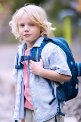 Super ľahká, moderná, ergonomická školská taška od nórskej značky Frii of Norway v prevedení Expand 22-25L ideálna pre detičky od 1. až do 3. ročníka. Školské tašky Frii of Norway boli špeciálne vyvinuté v spolupráci s chiropraktikom, vďaka čomu skvele sedia na detskom chrbte a prinášajú vysoký komfort nosenia. Základom opory nosného systému je vyberateľná, ergonomicky tvarovaná hliníková lišta, ktorá podporuje správne držanie tela a zabraňuje taške ohýbať sa a meniť tvar. Celá plocha tašky, ktorá sa dotýka chrbta, je príjemne priedušná a mäkká, nikde netlačí. Prepracovaný nosný systém dáva deťom skvelú oporu a pomáha im zdravo zvládnuť váhu školských pomôcok, ktorých je niekedy naozaj veľa. Ramenné popruhy sú pohodlné a mäkké, dajú sa nastaviť. Hrudný aj bedrový popruh je takisto nastaviteľný. Taška je priestranná, s jednoduchým otváraním a zatváraním pomocou vodeoodolného zipsu. Jeho vrchná časť sa otvára opačným smerom, aby sa deti ľahšie dostali k obsahu, keď taška visí na lavici či stoličke. Do tašky sa toho zmestí naozaj veľa, skladá sa z hlavnej 22/25l časti s prepážkami, ktorú v prevedení Expand môžu deti v prípade potreby v zadnej časti jednoducho rozšíriť, čím získajú ešte viac priestoru. Súčasťou je aj predné veľké vrecko na obedár s priestorom na fľašu a má tiež dve bočné priestranné vrecká. Taška disponuje prepracovaným dizajnom a má vysoko kvalitné prevedenie. Bezpečnosť detí zabezpečujú aj zapracované reflexné prvky. Súčasťou tašky je aj farebne zladená pláštenka v samostatnom, zazipsovanom vrecku v dolnej časti tašky, ktorá je tiež vybavená reflexnými prvkami. Bonusom je kľúčenka, ktorá obsahuje odnímateľné ozdoby s patentom na suchý zips, ktoré dopĺňajú dizajn tašky o hravosť a deti si ich môžu meniť podľa svojej preferencie. V prípade menšieho znečistenia stačí tašku očistiť vlhkou utierkou. V prípade veľkého znečistenia je výhodou možnosť prania v práčke. Vtedy najskôr vyberte zo zadnej časti hliníkovú lištu,odstráňte z tašky všetky ozdôbky a perte pri nižších otáčkach maximálne na 30 °C. Sušte voľne, nie v sušičke, taška by sa mohla poškodiť.