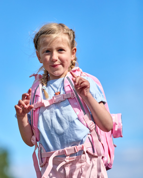 Super ľahká, moderná, ergonomická školská taška od nórskej značky Frii of Norway v prevedení Easy 22L ideálna pre detičky od 1. až do 3. ročníka. Školské tašky Frii of Norway boli špeciálne vyvinuté v spolupráci s chiropraktikom, vďaka čomu skvele sedia na detskom chrbte a prinášajú vysoký komfort nosenia. Základom opory nosného systému je vyberateľná, ergonomicky tvarovaná hliníková lišta, ktorá podporuje správne držanie tela a zabraňuje taške ohýbať sa a meniť tvar. Celá plocha tašky, ktorá sa dotýka chrbta, je príjemne priedušná a mäkká, nikde netlačí. Prepracovaný nosný systém dáva deťom skvelú oporu a pomáha im zdravo zvládnuť váhu školských pomôcok, ktorých je niekedy naozaj veľa. Ramenné popruhy sú pohodlné a mäkké, dajú sa nastaviť. Hrudný aj bedrový popruh je takisto nastaviteľný. Taška je priestranná, s jednoduchým otváraním a zatváraním pomocou vodeoodolného zipsu. Jeho vrchná časť sa otvára opačným smerom, aby sa deti ľahšie dostali k obsahu, keď taška visí na lavici či stoličke. Do tašky sa toho zmestí naozaj veľa, skladá sa z hlavnej 22l časti s prepážkami, predného veľkého vrecka na obedár s priestorom na fľašu a má tiež dve bočné priestranné vrecká. Taška má prepracovaný dizajn a vysoko kvalitné prevedenie. Bezpečnosť detí zabezpečujú aj zapracované reflexné prvky. Súčasťou tašky je aj farebne zladená pláštenka v samostatnom, zazipsovanom vrecku v dolnej časti tašky, ktorá je tiež vybavená reflexnými prvkami. Bonusom je kľúčenka, ktorá obsahuje odnímateľné ozdoby s patentom na suchý zips, ktoré dopĺňajú dizajn tašky o hravosť a deti si ich môžu meniť podľa svojej preferencie. V prípade menšieho znečistenia stačí tašku očistiť vlhkou utierkou. V prípade veľkého znečistenia je výhodou možnosť prania v práčke. Vtedy najskôr vyberte zo zadnej časti hliníkovú lištu,odstráňte z tašky všetky ozdôbky a perte pri nižších otáčkach maximálne na 30 °C. Sušte voľne, nie v sušičke, taška by sa mohla poškodiť.