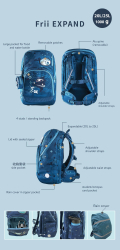 Super ľahká, moderná, ergonomická školská taška od nórskej značky Frii of Norway v prevedení Expand 22-25L ideálna pre detičky od 1. až do 3. ročníka. Školské tašky Frii of Norway boli špeciálne vyvinuté v spolupráci s chiropraktikom, vďaka čomu skvele sedia na detskom chrbte a prinášajú vysoký komfort nosenia. Základom opory nosného systému je vyberateľná, ergonomicky tvarovaná hliníková lišta, ktorá podporuje správne držanie tela a zabraňuje taške ohýbať sa a meniť tvar. Celá plocha tašky, ktorá sa dotýka chrbta, je príjemne priedušná a mäkká, nikde netlačí. Prepracovaný nosný systém dáva deťom skvelú oporu a pomáha im zdravo zvládnuť váhu školských pomôcok, ktorých je niekedy naozaj veľa. Ramenné popruhy sú pohodlné a mäkké, dajú sa nastaviť. Hrudný aj bedrový popruh je takisto nastaviteľný. Taška je priestranná, s jednoduchým otváraním a zatváraním pomocou vodeoodolného zipsu. Jeho vrchná časť sa otvára opačným smerom, aby sa deti ľahšie dostali k obsahu, keď taška visí na lavici či stoličke. Do tašky sa toho zmestí naozaj veľa, skladá sa z hlavnej 22/25l časti s prepážkami, ktorú v prevedení Expand môžu deti v prípade potreby v zadnej časti jednoducho rozšíriť, čím získajú ešte viac priestoru. Súčasťou je aj predné veľké vrecko na obedár s priestorom na fľašu a má tiež dve bočné priestranné vrecká. Taška disponuje prepracovaným dizajnom a má vysoko kvalitné prevedenie. Bezpečnosť detí zabezpečujú aj zapracované reflexné prvky. Súčasťou tašky je aj farebne zladená pláštenka v samostatnom, zazipsovanom vrecku v dolnej časti tašky, ktorá je tiež vybavená reflexnými prvkami. Bonusom je kľúčenka, ktorá obsahuje odnímateľné ozdoby s patentom na suchý zips, ktoré dopĺňajú dizajn tašky o hravosť a deti si ich môžu meniť podľa svojej preferencie. V prípade menšieho znečistenia stačí tašku očistiť vlhkou utierkou. V prípade veľkého znečistenia je výhodou možnosť prania v práčke. Vtedy najskôr vyberte zo zadnej časti hliníkovú lištu,odstráňte z tašky všetky ozdôbky a perte pri nižších otáčkach maximálne na 30 °C. Sušte voľne, nie v sušičke, taška by sa mohla poškodiť.