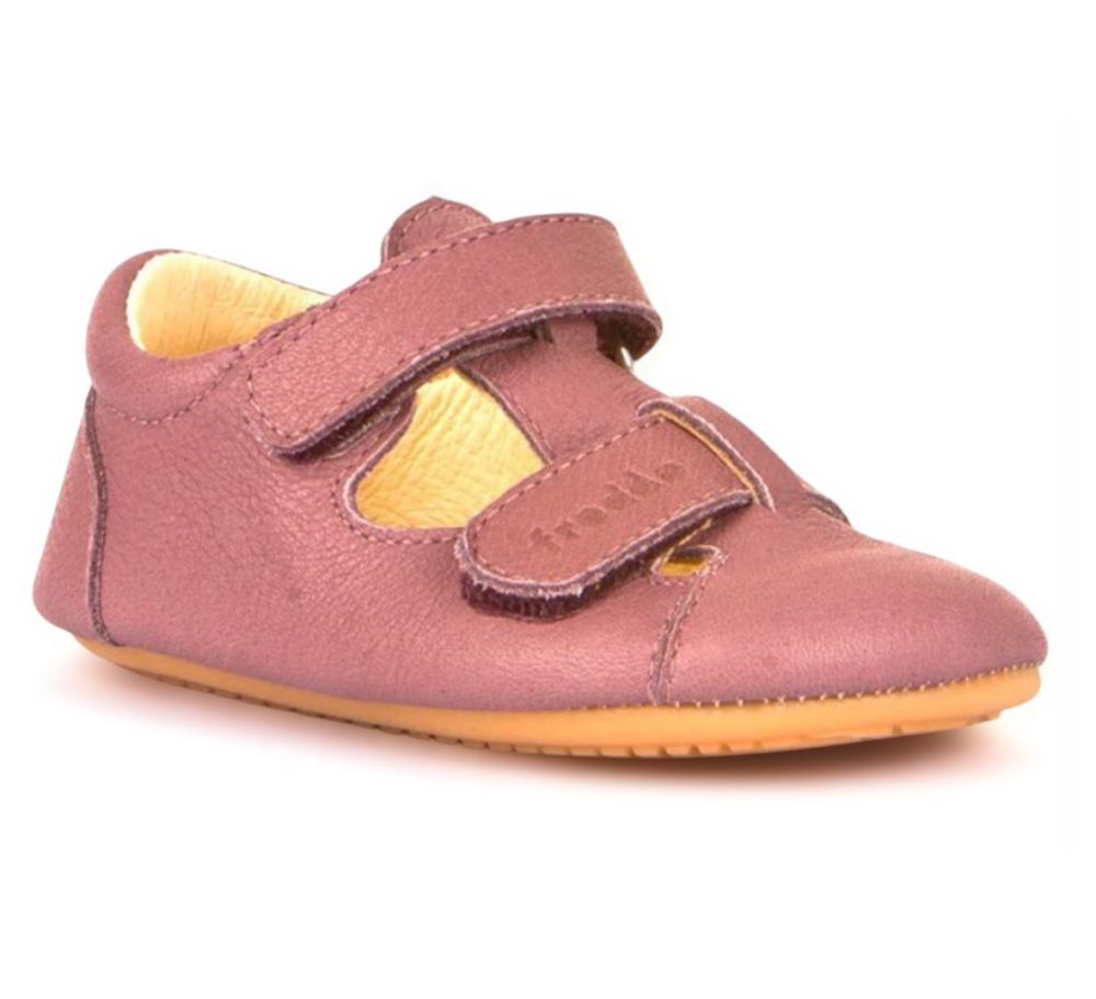 Barefootové sandálky od chorvátskej značky FRODDO so zatvorenou pätou a špicou. Sú ľahké, kvalitne prepracované, vďaka širšej špičke poskytujú dostatočný priestor pre prsty. Sandále sú vhodné pre dominantný palček aj nôžky typu plutvička. Sedia na stredne široké až široké nohy. Topánky majú tenkú a flexibilnú podrážku, ohybnú pozdĺžne aj priečne. Podrážka je s podošvou s nulovým dropom (medzi pätou a špičkou nie je výškovo žiaden rozdiel, podrážka je teda úplne plochá a chodidlo je rovnako vysoko od zeme v päte aj špičke). Zapínajú sa na dva suché zipsy, ktoré nohu pekne držia. Topánočky sa tak perfektne prispôsobia nôžkam. Vo vnútri sa nachádza plochá, kožená stielka bez podpory klenby.