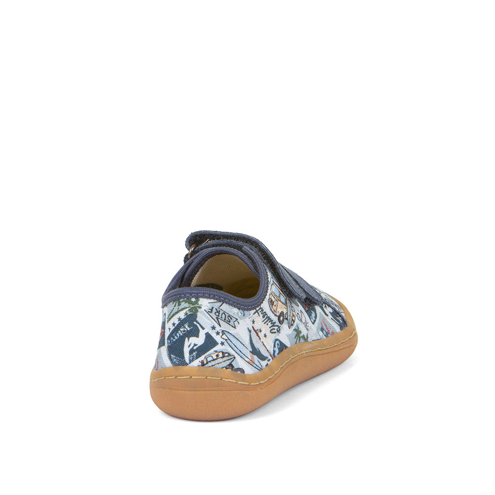 Barefootové plátené tenisky od chorvátskej značky FRODDO. Sú ľahké, kvalitne prepracované a poskytujú dostatočný priestor pre prsty. Špica je anatomicky tvarovaná, vhodná pre dominantný palček aj nôžky typu plutvička. Sedia na normálne široké aj širšie nohy a normálne vysoký priehlavok. Topánky majú tenkú a flexibilnú podrážku, ohybnú pozdĺžne aj priečne, sú extra pružné. Majú vyvýšenú pogumovanú špicu a pätu, ktorá ich chráni pred okopaním, čím sa predlžuje ich životnosť a odolnosť. Päta je mierne spevnená, pekne drží tvar. Gumená podrážka nosením jemne zmäkne, vďaka čomu budú plátenky ešte pohodlnejšie. Podošva je s nulovým dropom (medzi pätou a špičkou nie je výškovo žiaden rozdiel, podrážka je teda úplne plochá a chodidlo je rovnako vysoko od zeme v päte aj špičke). Nohy v topánkach upevňujú dva kožené suché zipsy, ktoré sa dajú pekne pritiahnuť aj k užším členkom. Vo vnútri sa nachádza plochá, vyberateľná, kožená stielka, ktorá je antibakteriálna. Textilný zvršok zabezpečuje nožičkám priedušnosť a činí topánočky ľahkými a vzdušnými. Údržba a starostlivosť o topánočky je jednoduchá, pri ušpinení stačí šetrne očistiť. Ak impregnujete, odporúčame použiť prostriedok určený na textilné povrchy, ideálne s UV filtrami, vďaka ktorým si textília dlho zachová stálosť farby.