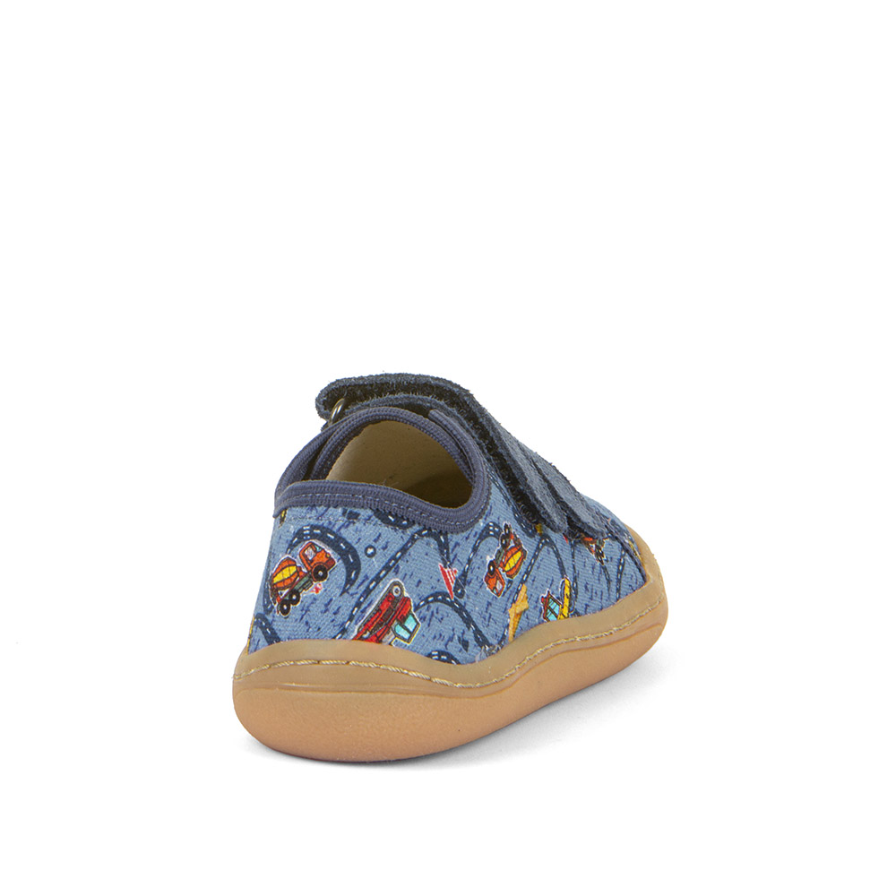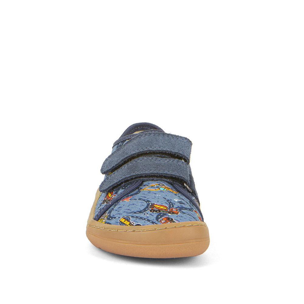 Barefootové plátené tenisky od chorvátskej značky FRODDO. Sú ľahké, kvalitne prepracované a poskytujú dostatočný priestor pre prsty. Špica je anatomicky tvarovaná, vhodná pre dominantný palček aj nôžky typu plutvička. Sedia na normálne široké aj širšie nohy a normálne vysoký priehlavok. Topánky majú tenkú a flexibilnú podrážku, ohybnú pozdĺžne aj priečne, sú extra pružné. Majú vyvýšenú pogumovanú špicu a pätu, ktorá ich chráni pred okopaním, čím sa predlžuje ich životnosť a odolnosť. Päta je mierne spevnená, pekne drží tvar. Gumená podrážka nosením jemne zmäkne, vďaka čomu budú plátenky ešte pohodlnejšie. Podošva je s nulovým dropom (medzi pätou a špičkou nie je výškovo žiaden rozdiel, podrážka je teda úplne plochá a chodidlo je rovnako vysoko od zeme v päte aj špičke). Nohy v topánkach upevňujú dva kožené suché zipsy, ktoré sa dajú pekne pritiahnuť aj k užším členkom. Vo vnútri sa nachádza plochá, vyberateľná, kožená stielka, ktorá je antibakteriálna. Textilný zvršok zabezpečuje nožičkám priedušnosť a činí topánočky ľahkými a vzdušnými. Údržba a starostlivosť o topánočky je jednoduchá, pri ušpinení stačí šetrne očistiť. Ak impregnujete, odporúčame použiť prostriedok určený na textilné povrchy, ideálne s UV filtrami, vďaka ktorým si textília dlho zachová stálosť farby.