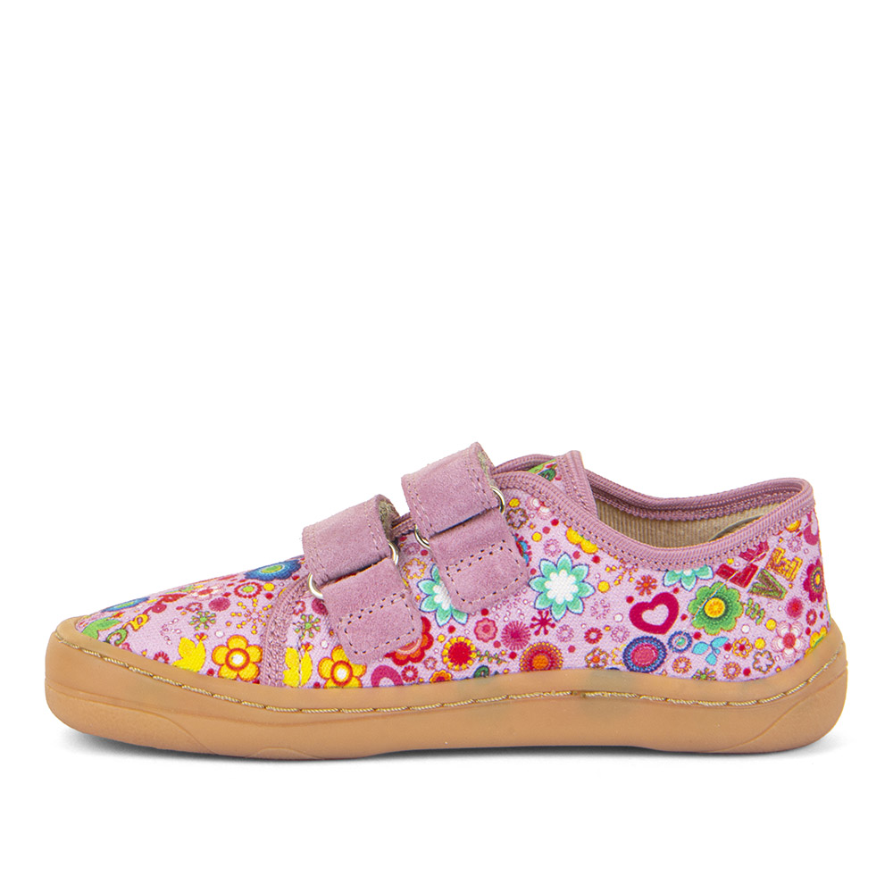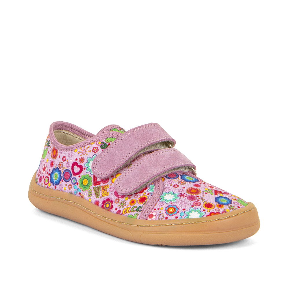 Barefootové plátené tenisky od chorvátskej značky FRODDO. Sú ľahké, kvalitne prepracované a poskytujú dostatočný priestor pre prsty. Špica je anatomicky tvarovaná, vhodná pre dominantný palček aj nôžky typu plutvička. Sedia na normálne široké aj širšie nohy a normálne vysoký priehlavok. Topánky majú tenkú a flexibilnú podrážku, ohybnú pozdĺžne aj priečne, sú extra pružné. Majú vyvýšenú pogumovanú špicu a pätu, ktorá ich chráni pred okopaním, čím sa predlžuje ich životnosť a odolnosť. Päta je mierne spevnená, pekne drží tvar. Gumená podrážka nosením jemne zmäkne, vďaka čomu budú plátenky ešte pohodlnejšie. Podošva je s nulovým dropom (medzi pätou a špičkou nie je výškovo žiaden rozdiel, podrážka je teda úplne plochá a chodidlo je rovnako vysoko od zeme v päte aj špičke). Nohy v topánkach upevňujú dva kožené suché zipsy, ktoré sa dajú pekne pritiahnuť aj k užším členkom. Vo vnútri sa nachádza plochá, vyberateľná, kožená stielka, ktorá je antibakteriálna. Textilný zvršok zabezpečuje nožičkám priedušnosť a činí topánočky ľahkými a vzdušnými. Údržba a starostlivosť o topánočky je jednoduchá, pri ušpinení stačí šetrne očistiť. Ak impregnujete, odporúčame použiť prostriedok určený na textilné povrchy, ideálne s UV filtrami, vďaka ktorým si textília dlho zachová stálosť farby.