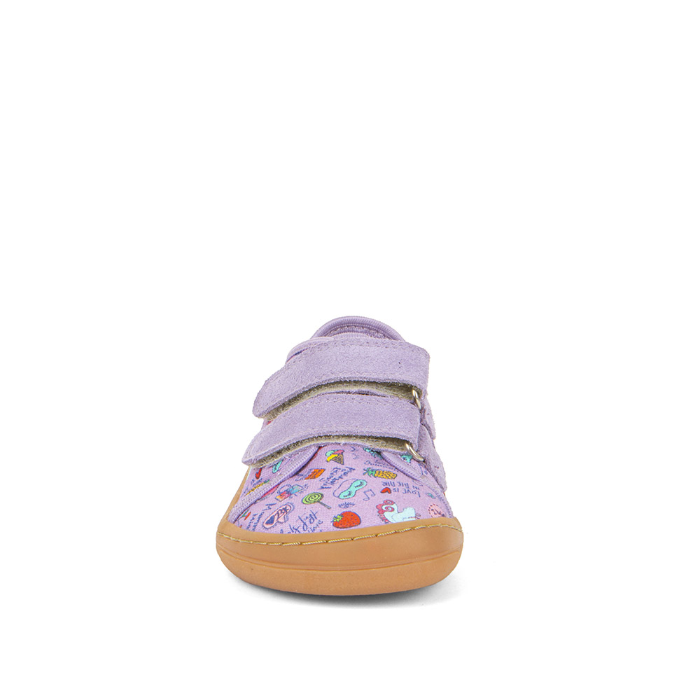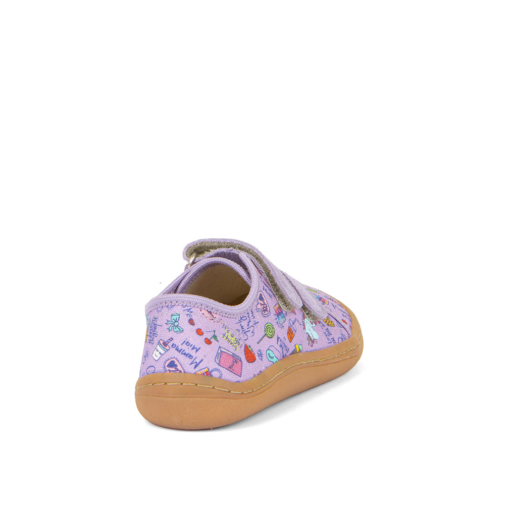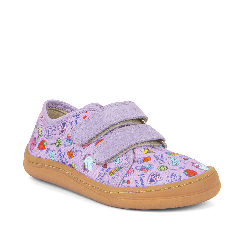 Barefootové plátené tenisky od chorvátskej značky FRODDO. Sú ľahké, kvalitne prepracované a poskytujú dostatočný priestor pre prsty. Špica je anatomicky tvarovaná, vhodná pre dominantný palček aj nôžky typu plutvička. Sedia na normálne široké aj širšie nohy a normálne vysoký priehlavok. Topánky majú tenkú a flexibilnú podrážku, ohybnú pozdĺžne aj priečne, sú extra pružné. Majú vyvýšenú pogumovanú špicu a pätu, ktorá ich chráni pred okopaním, čím sa predlžuje ich životnosť a odolnosť. Päta je mierne spevnená, pekne drží tvar. Gumená podrážka nosením jemne zmäkne, vďaka čomu budú plátenky ešte pohodlnejšie. Podošva je s nulovým dropom (medzi pätou a špičkou nie je výškovo žiaden rozdiel, podrážka je teda úplne plochá a chodidlo je rovnako vysoko od zeme v päte aj špičke). Nohy v topánkach upevňujú dva kožené suché zipsy, ktoré sa dajú pekne pritiahnuť aj k užším členkom. Vo vnútri sa nachádza plochá, vyberateľná, kožená stielka, ktorá je antibakteriálna. Textilný zvršok zabezpečuje nožičkám priedušnosť a činí topánočky ľahkými a vzdušnými. Údržba a starostlivosť o topánočky je jednoduchá, pri ušpinení stačí šetrne očistiť. Ak impregnujete, odporúčame použiť prostriedok určený na textilné povrchy, ideálne s UV filtrami, vďaka ktorým si textília dlho zachová stálosť farby.