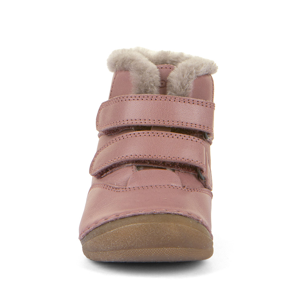 Barefootové celokožené topánky zateplené jahňacou vlnou od chorvátskej značky FRODDO. Sú ľahké, kvalitne prepracované a poskytujú dostatočný priestor pre prsty. Sedia na normálne široké nohy a normálne vysoký priehlavok. Topánky majú tenkú a flexibilnú podrážku, ohybnú pozdĺžne aj priečne. Majú vyvýšenú pogumovanú špicu a pätu, ktorá ich chráni pred okopaním, čím sa predlžuje ich životnosť a odolnosť. Päta je mierne spevnená, pekne drží tvar. Podrážka nosením jemne zmäkne, vďaka čomu budú topánky ešte pohodlnejšie, s podošvou vyrobenou z termo gumy a s nulovým dropom (medzi pätou a špičkou nie je výškovo žiaden rozdiel, podrážka je teda úplne plochá a chodidlo je rovnako vysoko od zeme v päte aj špičke). Nohy v topánkach upevňujú dva suché zipsy, ktoré sa dajú pekne pritiahnuť aj k užším členkom. Ich vnútorné zateplenie z jahňacej vlny ich činí hrejivými a sú tak ideálne na studené zimné obdobie. Vo vnútri sa nachádza zateplená, netvarovaná stielka. Údržba a starostlivosť o topánočky je jednoduchá, pri ušpinení stačí šetrne očistiť a pravidelne impregnovať.