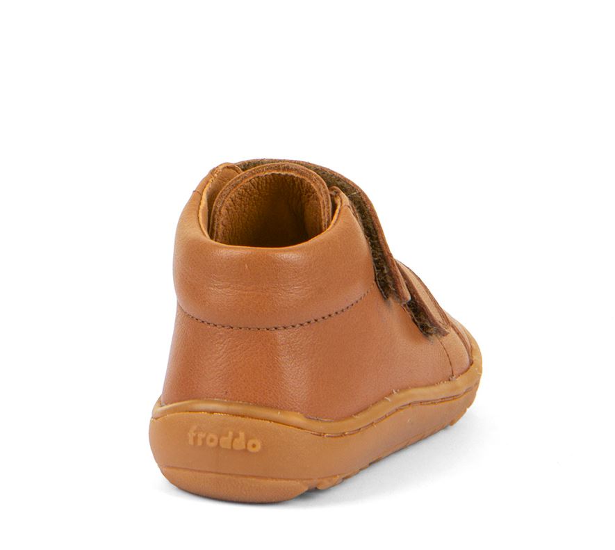 Barefootové celokožené topánky od chorvátskej značky FRODDO. Sú ľahké, kvalitne prepracované a poskytujú dostatočný priestor pre prsty. Špica je anatomicky tvarovaná, vhodná pre dominantný palček aj nôžky typu plutvička. Sedia na normálne široké aj široké nohy a normálne vysoký až vysoký priehlavok. Topánky majú tenkú a flexibilnú podrážku, ohybnú pozdĺžne aj priečne. Majú vyvýšenú pogumovanú špicu a pätu, ktorá ich chráni pred okopaním, čím sa predlžuje ich životnosť a odolnosť. Päta je mierne spevnená, pekne drží tvar. Podrážka nosením jemne zmäkne, vďaka čomu budú topánky ešte pohodlnejšie, je tiež protišmyková (extra grip), s podošvou s nulovým dropom (medzi pätou a špičkou nie je výškovo žiaden rozdiel, podrážka je teda úplne plochá a chodidlo je rovnako vysoko od zeme v päte aj špičke). Nohy v topánkach upevňujú dva suché zipsy, ktoré sa dajú pekne pritiahnuť aj k užším členkom. Vo vnútri sa nachádza plochá, vyberateľná, kožená stielka, ktorá je antibakteriálna.