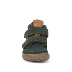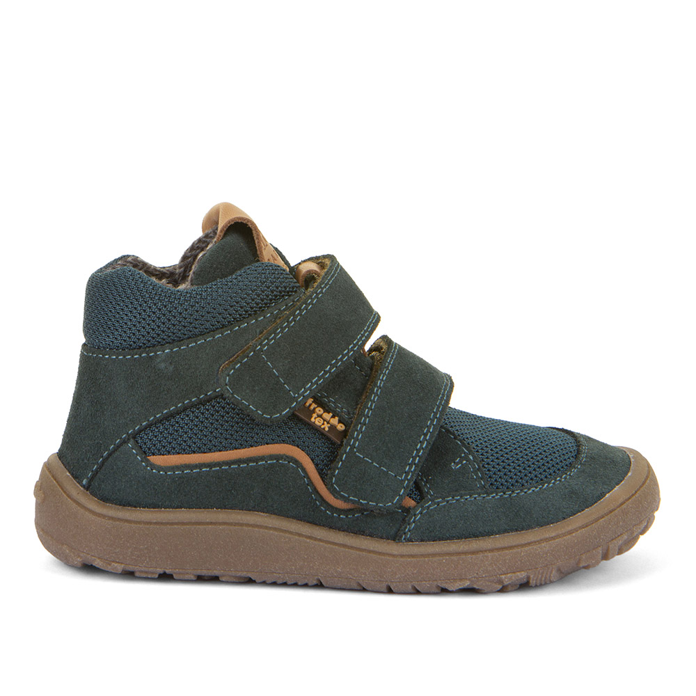 Barefootové celokožené topánky od chorvátskej značky FRODDO s nepremokavou Froddo-tex membránou,ktorá ochráni topánočky bez dodatočnej impregnácie pred dažďom, snehom a vlhkosťou. Sú ľahké, kvalitne prepracované a poskytujú dostatočný priestor pre prsty. Špica je anatomicky tvarovaná, vhodná pre dominantný palček aj nôžky typu plutvička. Sedia na normálne široké nohy a normálne vysoký priehlavok. Topánky majú tenkú a flexibilnú podrážku, ohybnú pozdĺžne aj priečne. Majú vyvýšenú pogumovanú špicu a pätu, ktorá ich chráni pred okopaním, čím sa predlžuje ich životnosť a odolnosť. Päta je mierne spevnená, pekne drží tvar. Podrážka nosením jemne zmäkne, vďaka čomu budú topánky ešte pohodlnejšie, je tiež protišmyková (extra grip), s podošvou s nulovým dropom (medzi pätou a špičkou nie je výškovo žiaden rozdiel, podrážka je teda úplne plochá a chodidlo je rovnako vysoko od zeme v päte aj špičke). Nohy v topánkach upevňujú dva suché zipsy, ktoré sa dajú pekne pritiahnuť aj k užším členkom. Vo vnútri sa nachádza plochá, vyberateľná, kožená stielka, ktorá je antibakteriálna.