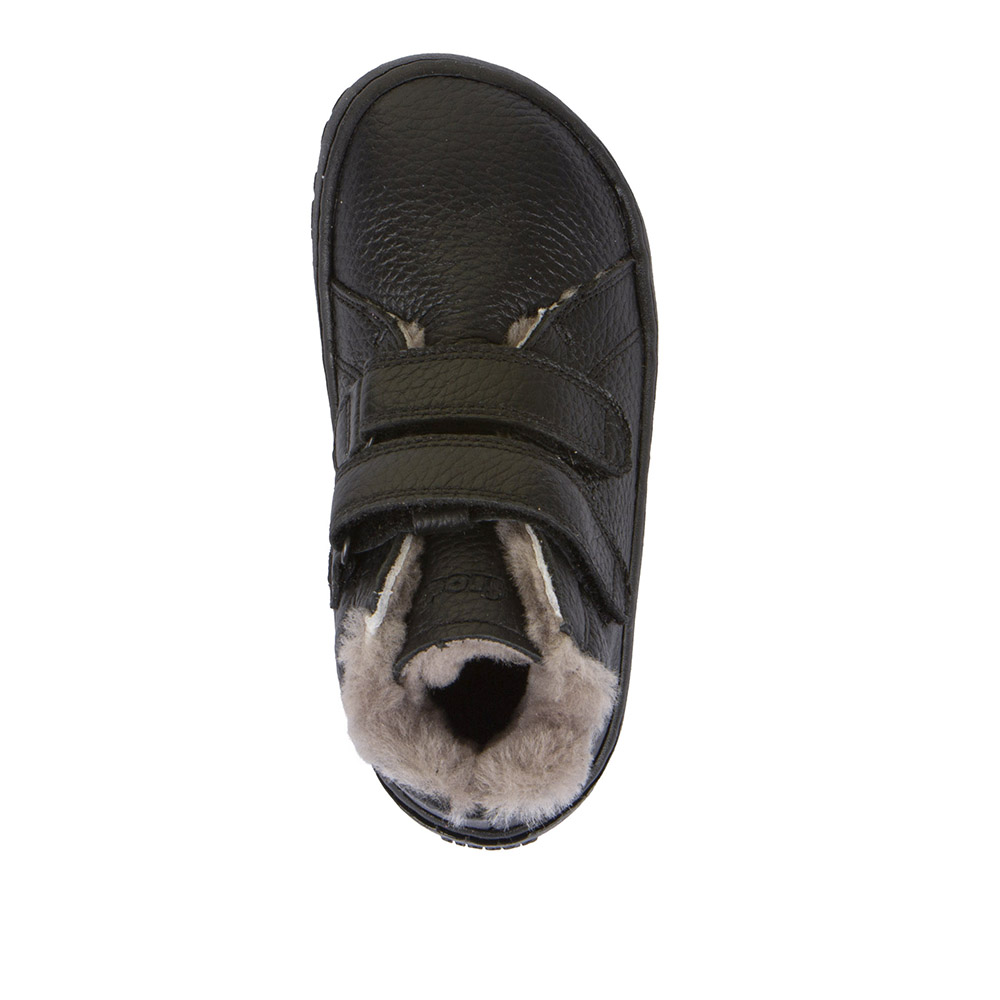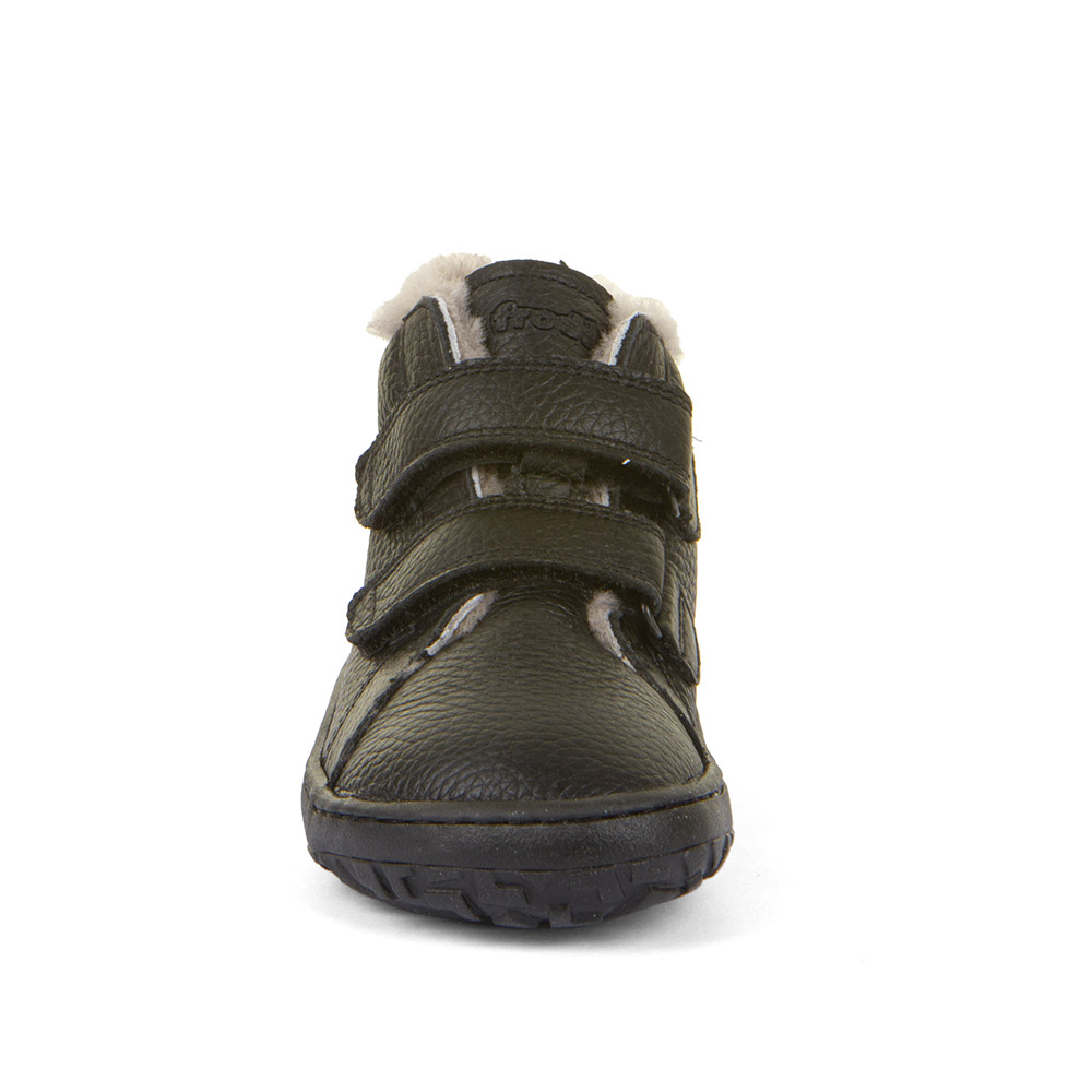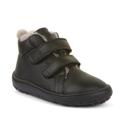 Barefootové celokožené topánky zateplené jahňacou vlnou od chorvátskej značky FRODDO. Sú ľahké, kvalitne prepracované a poskytujú dostatočný priestor pre prsty. Špica je anatomicky tvarovaná, vhodná pre dominantný palček aj nôžky typu plutvička. Sedia na normálne široké nohy a normálne vysoký priehlavok. Topánky majú tenkú a flexibilnú podrážku, ohybnú pozdĺžne aj priečne. Majú vyvýšenú pogumovanú špicu a pätu, ktorá ich chráni pred okopaním, čím sa predlžuje ich životnosť a odolnosť. Päta je mierne spevnená, pekne drží tvar. Podrážka nosením jemne zmäkne, vďaka čomu budú topánky ešte pohodlnejšie, je tiež protišmyková (extra grip), s podošvou s nulovým dropom (medzi pätou a špičkou nie je výškovo žiaden rozdiel, podrážka je teda úplne plochá a chodidlo je rovnako vysoko od zeme v päte aj špičke). Nohy v topánkach upevňujú dva suché zipsy, ktoré sa dajú pekne pritiahnuť aj k užším členkom. Ich vnútorné zateplenie z jahňacej vlny ich činí hrejivými a sú tak ideálne na studené zimné obdobie. Vo vnútri sa nachádza zateplená, netvarovaná stielka. Údržba a starostlivosť o topánočky je jednoduchá, pri ušpinení stačí šetrne očistiť a pravidelne impregnovať.