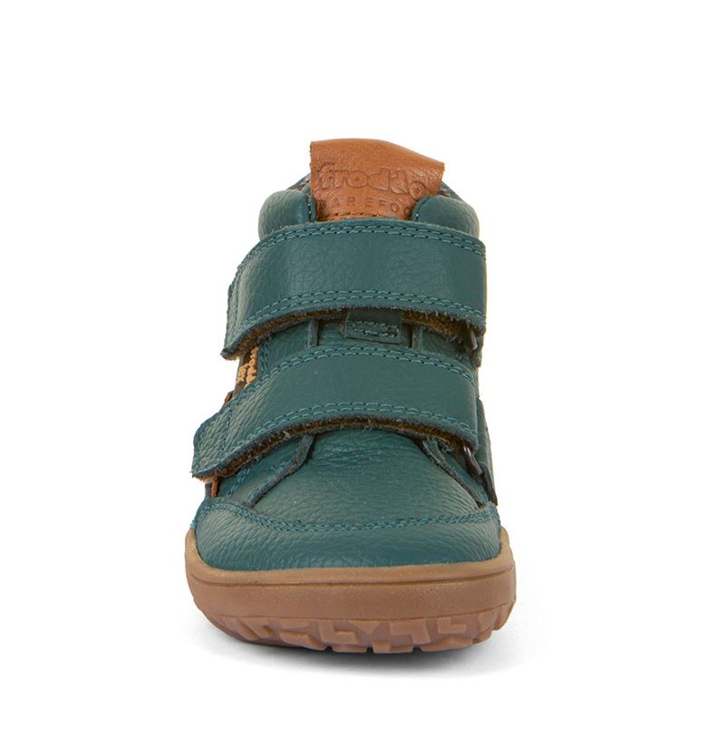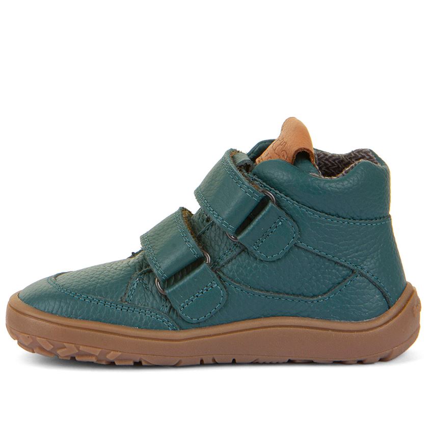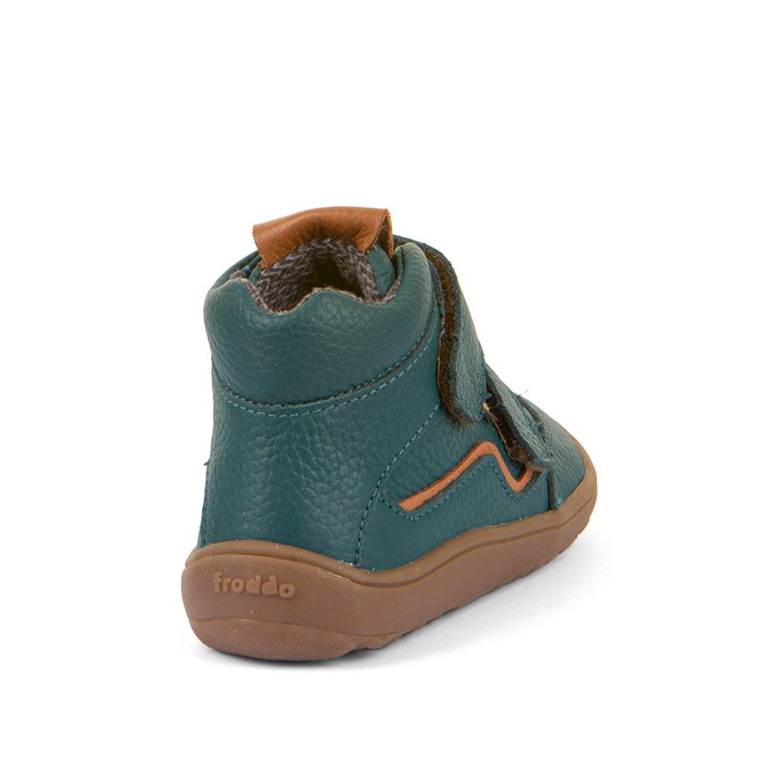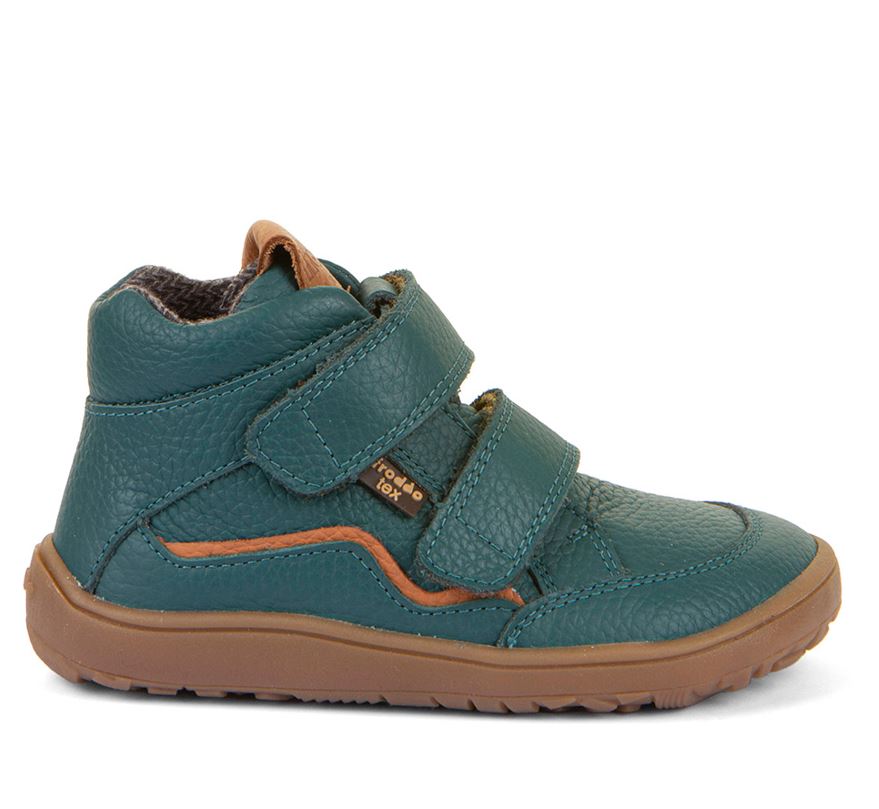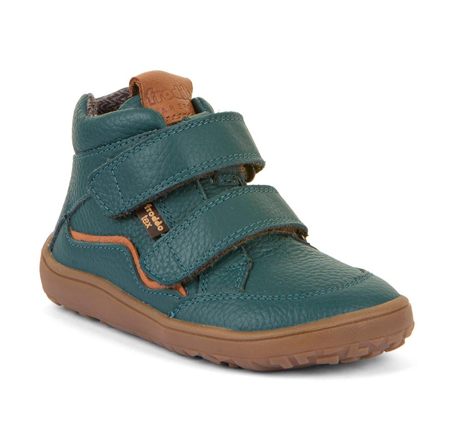 Barefootové celokožené topánky od chorvátskej značky FRODDO s nepremokavou Froddo-tex membránou,ktorá ochráni topánočky bez dodatočnej impregnácie pred dažďom, snehom a vlhkosťou. Sú ľahké, kvalitne prepracované a poskytujú dostatočný priestor pre prsty. Špica je anatomicky tvarovaná, vhodná pre dominantný palček aj nôžky typu plutvička. Sedia na normálne široké nohy a normálne vysoký priehlavok. Topánky majú tenkú a flexibilnú podrážku, ohybnú pozdĺžne aj priečne. Majú vyvýšenú pogumovanú špicu a pätu, ktorá ich chráni pred okopaním, čím sa predlžuje ich životnosť a odolnosť. Päta je mierne spevnená, pekne drží tvar. Podrážka nosením jemne zmäkne, vďaka čomu budú topánky ešte pohodlnejšie, je tiež protišmyková (extra grip), s podošvou s nulovým dropom (medzi pätou a špičkou nie je výškovo žiaden rozdiel, podrážka je teda úplne plochá a chodidlo je rovnako vysoko od zeme v päte aj špičke). Nohy v topánkach upevňujú dva suché zipsy, ktoré sa dajú pekne pritiahnuť aj k užším členkom. Vo vnútri sa nachádza plochá, vyberateľná, kožená stielka, ktorá je antibakteriálna.
