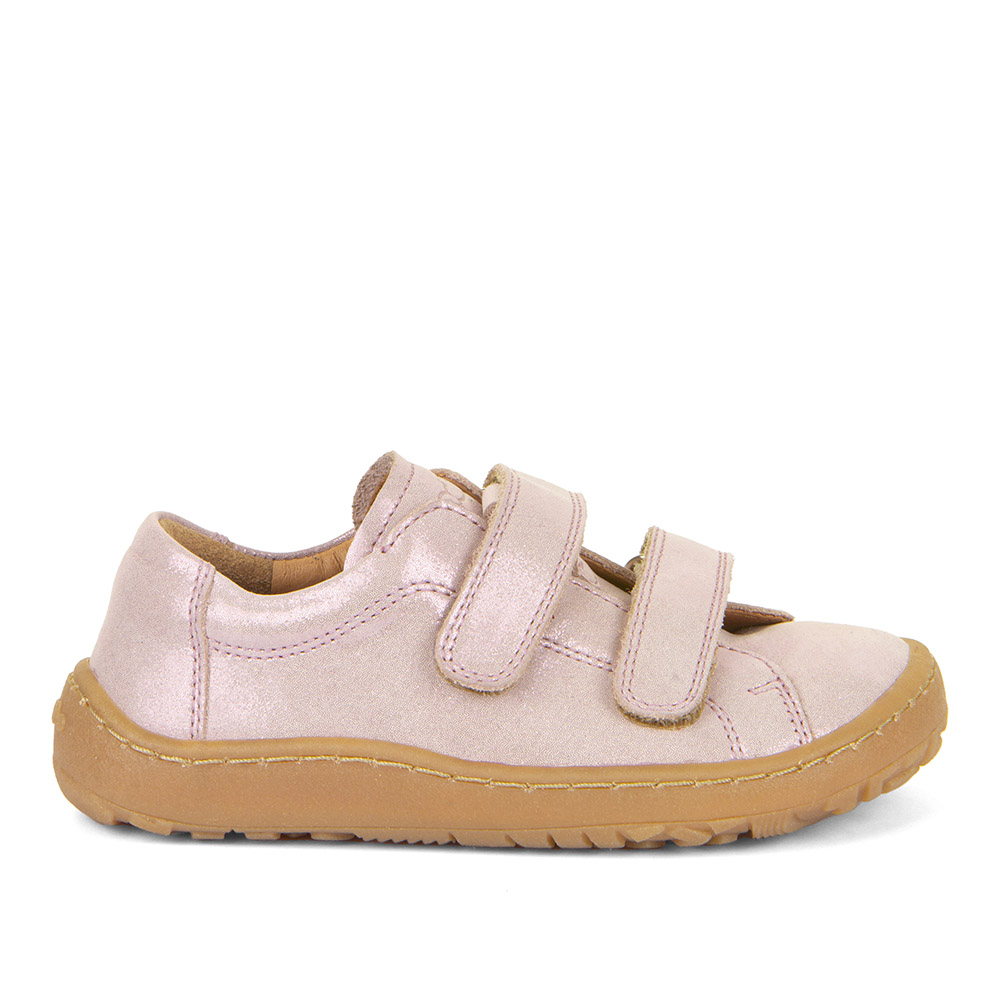 Barefootové celokožené topánky od chorvátskej značky FRODDO. Sú ľahké, kvalitne prepracované a poskytujú dostatočný priestor pre prsty. Špica je anatomicky tvarovaná, vhodná pre dominantný palček aj nôžky typu plutvička. Sedia na normálne široké nohy a normálne vysoký priehlavok. Topánky majú tenkú a flexibilnú podrážku, ohybnú pozdĺžne aj priečne. Majú vyvýšenú pogumovanú špicu a pätu, ktorá ich chráni pred okopaním, čím sa predlžuje ich životnosť a odolnosť. Päta je mierne spevnená, pekne drží tvar. Podrážka nosením jemne zmäkne, vďaka čomu budú topánky ešte pohodlnejšie, je tiež protišmyková (extra grip), s podošvou s nulovým dropom (medzi pätou a špičkou nie je výškovo žiaden rozdiel, podrážka je teda úplne plochá a chodidlo je rovnako vysoko od zeme v päte aj špičke). Nohy v topánkach upevňujú dva suché zipsy, ktoré sa dajú pekne pritiahnuť aj k užším členkom. Vo vnútri sa nachádza plochá, vyberateľná, kožená stielka, ktorá je antibakteriálna. Topánočky majú tiež zaujímavé prevedenie, sú lesklé.