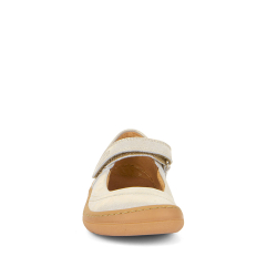 Barefootové baleríny od chorvátskej značky FRODDO. Sú ľahké, kvalitne prepracované a poskytujú dostatočný priestor pre prsty. Špica je anatomicky tvarovaná, vhodná pre dominantný palček aj nôžky typu plutvička. Sedia na normálne široké nohy a normálne vysoký aj vyšší priehlavok. Topánky majú tenkú a flexibilnú podrážku, ohybnú pozdĺžne aj priečne. Päta je mierne spevnená, pekne drží tvar. Podrážka je s nulovým dropom (medzi pätou a špičkou nie je výškovo žiaden rozdiel, podrážka je teda úplne plochá a chodidlo je rovnako vysoko od zeme v päte aj špičke). Zapínajú sa na suchý zips. Topánočky sa tak perfektne prispôsobia nôžkam. Vo vnútri sa nachádza plochá, kožená stielka bez podpory klenby, ktorá je vyberateľná.