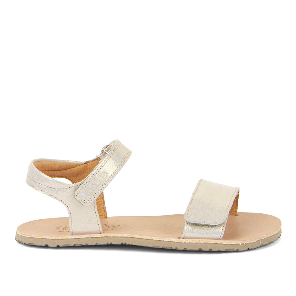 Barefootové sandálky od chorvátskej značky FRODDO s otvorenou pätou a špicou. Sú ľahké, kvalitne prepracované a poskytujú dostatočný priestor pre prsty. Špica je anatomicky tvarovaná, vhodná pre dominantný palček aj nôžky typu plutvička. Sedia na normálne široké nohy a normálne vysoký aj vyšší priehlavok. Topánky majú tenkú a flexibilnú podrážku, ohybnú pozdĺžne aj priečne. Podrážka je protišmyková s podošvou s nulovým dropom (medzi pätou a špičkou nie je výškovo žiaden rozdiel, podrážka je teda úplne plochá a chodidlo je rovnako vysoko od zeme v päte aj špičke). Zapínajú sa na suchý zips, ktorý sa nachádza okolo členku a tiež na priehlavkovej časti sandál. Topánočky sa tak perfektne prispôsobia nôžkam. Vo vnútri sa nachádza plochá, kožená stielka bez podpory klenby.
