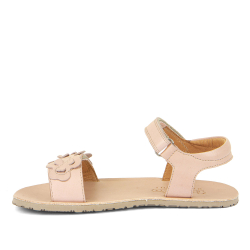 Barefootové sandálky od chorvátskej značky FRODDO s otvorenou pätou a špicou. Sú ľahké, kvalitne prepracované a poskytujú dostatočný priestor pre prsty. Špica je anatomicky tvarovaná, vhodná pre dominantný palček aj nôžky typu plutvička. Sedia na normálne široké nohy a normálne vysoký aj vyšší priehlavok. Topánky majú tenkú a flexibilnú podrážku, ohybnú pozdĺžne aj priečne. Podrážka je protišmyková s podošvou s nulovým dropom (medzi pätou a špičkou nie je výškovo žiaden rozdiel, podrážka je teda úplne plochá a chodidlo je rovnako vysoko od zeme v päte aj špičke). Zapínajú sa na suchý zips, ktorý sa nachádza okolo členku a tiež na priehlavkovej časti sandál. Topánočky sa tak perfektne prispôsobia nôžkam. Vo vnútri sa nachádza plochá, kožená stielka bez podpory klenby.