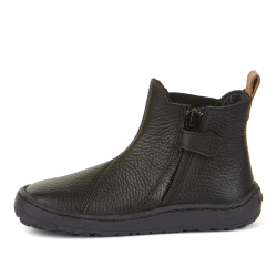 Barefootové celokožené čižmičky od chorvátskej značky FRODDO ideálne na prechodné obdobie. Sú ľahké, kvalitne prepracované a poskytujú dostatočný priestor pre prsty. Špica je anatomicky tvarovaná, vhodná pre dominantný palček aj nôžky typu plutvička. Sedia na normálne široké nohy a normálne vysoký priehlavok. Topánky majú tenkú a flexibilnú podrážku, ohybnú pozdĺžne aj priečne. Majú vyvýšenú pogumovanú špicu a pätu, ktorá ich chráni pred okopaním, čím sa predlžuje ich životnosť a odolnosť. Päta je mierne spevnená, pekne drží tvar. Podrážka nosením jemne zmäkne, vďaka čomu budú topánky ešte pohodlnejšie, je tiež protišmyková (extra grip), s podošvou s nulovým dropom (medzi pätou a špičkou nie je výškovo žiaden rozdiel, podrážka je teda úplne plochá a chodidlo je rovnako vysoko od zeme v päte aj špičke). Zapínajú sa na zips, ktorý je klasicky umiestnený z vnútornej strany topánočiek. Vo vnútri sa nachádza plochá, vyberateľná, kožená stielka, ktorá je antibakteriálna. Povrch topánok je vodo-odpudivý, nie však nepremokavý, preto je odporúčaná pravidelná impregnácia, vďaka ktorej je obuv odolnejšia a zostáva chránená pred vonkajšími vplyvmi. Údržba a starostlivosť o topánočky je jednoduchá, pri ušpinení stačí šetrne očistiť vlhkou handričkou.