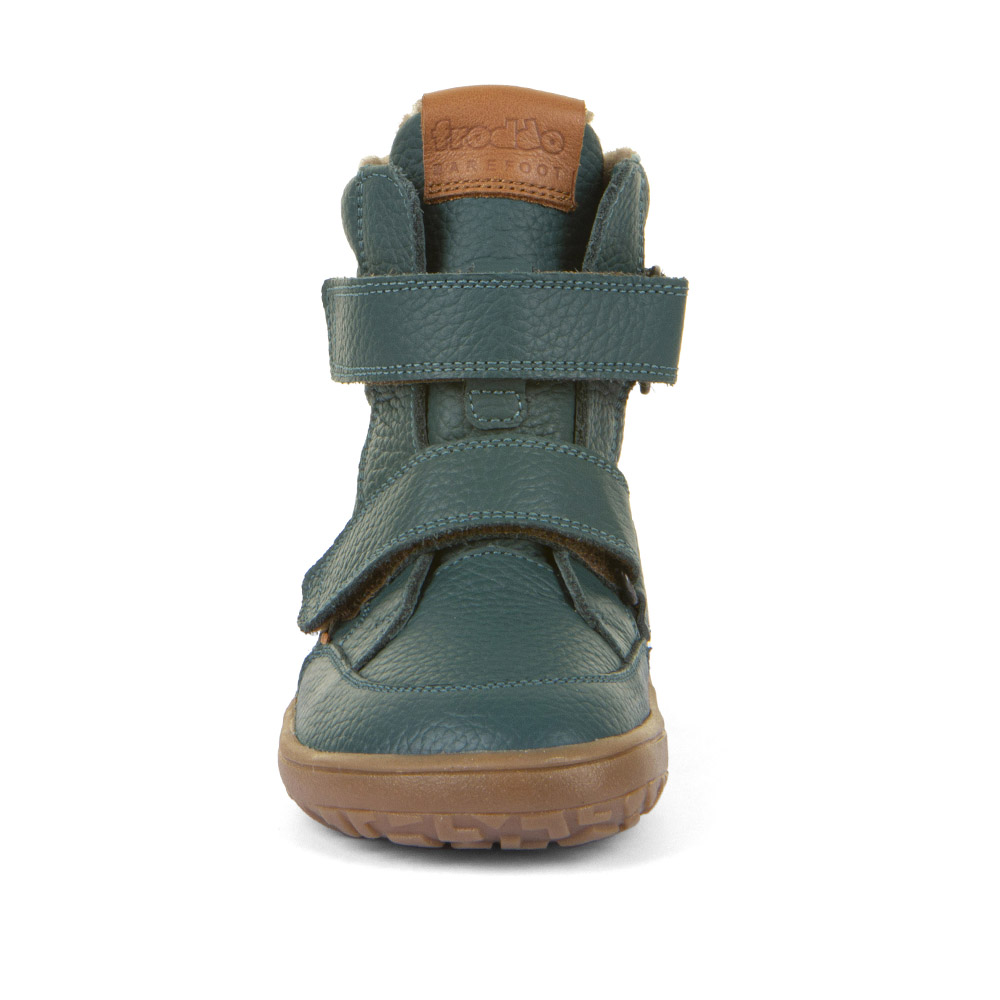 Barefootové celokožené topánky zateplené ovčou vlnou od chorvátskej značky FRODDO s nepremokavou Froddo-tex membránou, ktorá ochráni topánočky bez dodatočnej impregnácie pred dažďom, snehom a vlhkosťou. Sú ľahké, kvalitne prepracované a poskytujú dostatočný priestor pre prsty. Špica je anatomicky tvarovaná, vhodná pre dominantný palček aj nôžky typu plutvička. Sedia na normálne široké nohy a normálne vysoký priehlavok. Topánky majú tenkú a flexibilnú podrážku, ohybnú pozdĺžne aj priečne. Majú vyvýšenú pogumovanú špicu a pätu, ktorá ich chráni pred okopaním, čím sa predlžuje ich životnosť a odolnosť. Päta je mierne spevnená, pekne drží tvar. Podrážka nosením jemne zmäkne, vďaka čomu budú topánky ešte pohodlnejšie, je tiež protišmyková (extra grip). Nohy v topánkach upevňujú dva suché zipsy, ktoré sa dajú pekne pritiahnuť aj k užším členkom. Ich vnútorné zateplenie z ovčej vlny ich činí hrejivými a sú tak ideálne na studené zimné obdobie. Vo vnútri sa nachádza hrejivá, netvarovaná stielka. Údržba a starostlivosť o topánočky je jednoduchá, pri ušpinení stačí šetrne očistiť a v prípade používania impregnačných prostriedkov určených pre ochranu pred zašpinením, treba použiť impregnačný prostriedok výhradne určený na topánky s membránami.