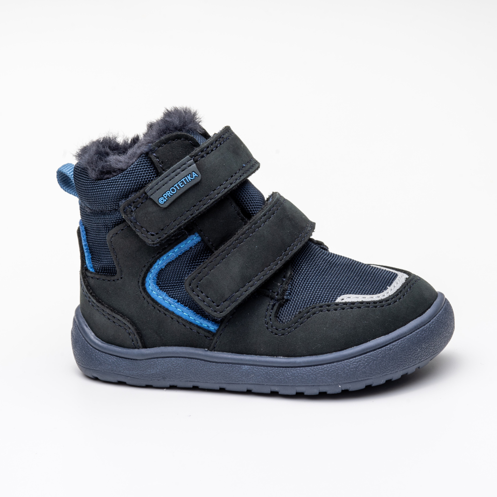 Celokožené, barefootové vyššie topánky od značky Protetika s nepremokavou Pro-tex membránou. Pro-tex membrána chráni nôžky v topánkach pred dažďom, snehom a vlhkosťou, bez nutnosti impregnácie. Topánočky sú flexibilné, ohybné v oboch smeroch, pozdĺžne aj priečne. Sú ľahké a poskytujú dostatočný priestor pre prsty. Špica je anatomicky tvarovaná, vhodná aj pre dominantný palček. Sedia na normálne široké nôžky a znesú aj vyšší priehlavok. Nohy v topánkach upevňujú dva suché zipsy, ktoré sa dajú pekne pritiahnuť ku členkom, čo je výhodou najmä pre detičky s užšími členkami. Vnútro topánok je vystlané teplou, syntetickou kožušinkou. Vyberateľná stielka je zateplená, netvarovaná. Topánky majú vyvýšenú pogumovanú špicu a pätu, ktorá ich chráni pred okopaním, čím sa predlžuje ich životnosť. Údržba je jednoduchá, pri ušpinení stačí šetrne očistiť . Ak by ste sa predsa len rozhodli ich naimpregnovať, pre jednoduchšiu údržbu a ochranu pred zašpinením, tak použite impregnačný prostriedok určený na membrány.