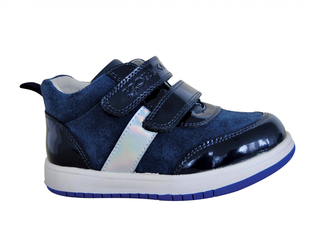 Kožený model od značky Protetika v štýlovom dievčenskom prevedení. Topánočky sú pevné, fixujú členok a vyberateľná stielka je s ortopedicky tvarovanou klenbou. Sedia na normálne široké nôžky a majú spevnenú pätu. Obujú ich aj deti s vyšším priehlavkom. Dajú sa pekne utiahnuť suchým zipsom. Topánočky sú vyššie, ideálne aj na sychravé jarné či  jesenné počasie. Údržba a starostlivosť je jednoduchá, pri ušpinení stačí tenisky očistiť jemnou kefkou a opäť naimpregnovať.