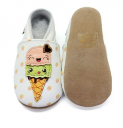 Krásne mäkké capačky francúzskej značky Lait et Miel sú vyrobené z kvalitnej kože. Ich hravý dizajn poteší detičky aj mamičky. Majú protišmykovú podrážku z brúsenej kože a v oblasti špičky dostatočný priestor pre prsty. Sú ohybné priečne aj pozdĺžne. Sadnú na viaceré typy nožičiek a aj na vyššie priehlavky. Obúvanie je jednoduché, stačí poriadne roztiahnuť gumičku a nazuť capačky. Gumička netlačí a zabraňuje tomu, že si ich malé detičky vyzujú samé. Okrem toho sú balené v pekných vreckách, a tak sú vhodné aj ako darček. Sú obľúbené od tých najmenších cez prvochodcov až ku skúseným bežcom.
