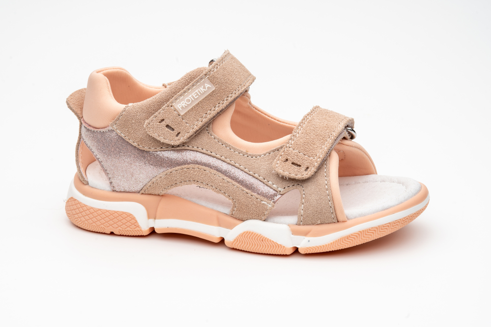Kožené sandálky s uzavretou pätou a otvorenou špičkou od značky Protetika. Stielka je s ortopedicky tvarovanou klenbou a päta je spevnená. Sandálky sú pekne prispôsobiteľné suchým zipsom v oblasti členku aj prstov. Vďaka tomu dobre obopnú nôžky. Sedia na normálne široké nohy a sú vhodné aj pre vyšší priehlavok.