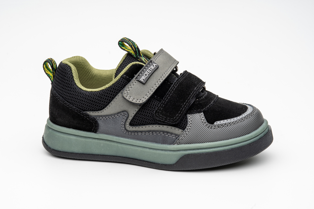 Tenisky od značky Protetika v štýlovom prevedení. Sedia na normálne široké, aj širšie nôžky a obujú ich aj deti s vyšším priehlavkom. Topánočky sú pevné, fixujú členok a majú tiež spevnenú pätu. Nachádza sa v nich kožená, vyberateľná stielka, ktorá má ortopedicky tvarovanú klenbu. Dajú sa pekne utiahnuť dvoma suchými zipsami a prispôsobiť tak nôžkam. Vnútro topánok je vystlané mäkkou, priedušnou textíliou. Údržba a starostlivosť o topánky je jednoduchá, pri ušpinení stačí šetrne očistiť. Odporúčaná je aj pravidelná impregnácia, vďaka ktorej je obuv odolnejšia a zostáva chránená pred vonkajšími vplyvmi.