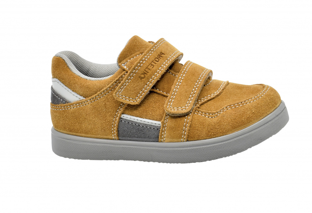 Kožené, nízke tenisky od značky Protetika s nepremokavou Pro-tex membránou v štýlovom chlapčenskom prevedení. Vďaka membráne sú nôžky v topánkach chránené pred dažďom a vlhkosťou, bez nutnosti impregnácie. Sú vhodné na prechodné obdobie, ideálne pre sychravé jesenné či jarné počasie. Sedia na normálne široké nôžky a obujú ich aj deti s mierne vyšším priehlavkom. Topánočky sú pevné, fixujú členok a majú tiež spevnenú pätu. Nachádza sa v nich kožená, vyberateľná stielka, ktorá má ortopedicky tvarovanú klenbu. Dajú sa pekne utiahnuť dvoma suchými zipsami a prispôsobiť tak nôžkam. Sú tiež vhodné aj na užšie členky. Vnútro topánok je vystlané mäkkou, priedušnou textíliou. Ak by ste sa predsa len rozhodli ich naimpregnovať, pre jednoduchšiu údržbu a ochranu pred zašpinením, tak použite impregnačný prostriedok určený na membrány.