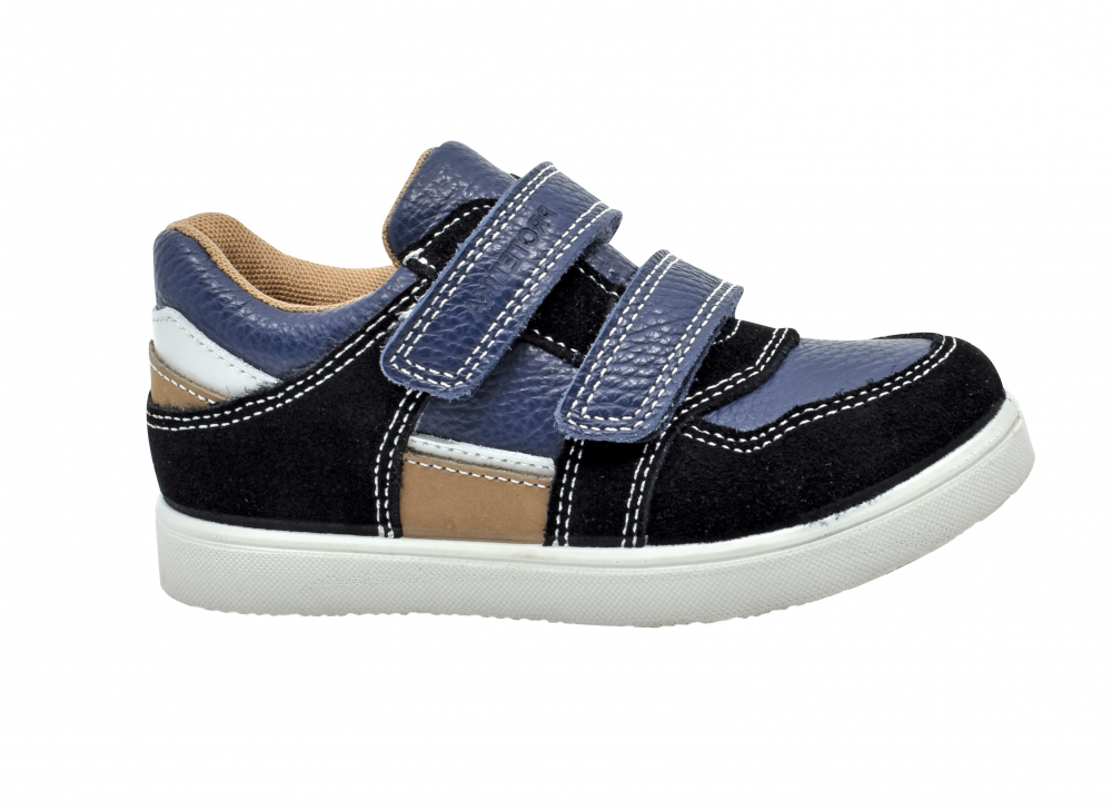 Kožené, nízke tenisky od značky Protetika s nepremokavou Pro-tex membránou v štýlovom chlapčenskom prevedení. Vďaka membráne sú nôžky v topánkach chránené pred dažďom a vlhkosťou, bez nutnosti impregnácie. Sú vhodné na prechodné obdobie, ideálne pre sychravé jesenné či jarné počasie. Sedia na normálne široké nôžky a obujú ich aj deti s mierne vyšším priehlavkom. Topánočky sú pevné, fixujú členok a majú tiež spevnenú pätu. Nachádza sa v nich kožená, vyberateľná stielka, ktorá má ortopedicky tvarovanú klenbu. Dajú sa pekne utiahnuť dvoma suchými zipsami a prispôsobiť tak nôžkam. Sú tiež vhodné aj na užšie členky. Vnútro topánok je vystlané mäkkou, priedušnou textíliou. Ak by ste sa predsa len rozhodli ich naimpregnovať, pre jednoduchšiu údržbu a ochranu pred zašpinením, tak použite impregnačný prostriedok určený na membrány.
