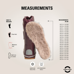 Zateplené gumené čižmy dánskej značky Mikk-line v štýlovom minimalistickom prevedení s nádhernou farebnou škálou. Sú mäkké, ohybné, dobre sedia na nohe a ľahko sa obúvajú. Sú vhodné pre normálne široké aj širšie nôžky a znesú aj vyšší priehlavok. Vďaka anatomicky tvarovanej špičke poskytujú dostatok miesta pre prsty. Sú vyrobené z prírodnej gumy a majú protišmykovú podrážku. Vo vnútri sa nachádzajú zateplené, netvarované, vyberateľné stielky, ktoré sú zo spodnej strany potiahnuté hlinníkovou fóliou. Vďaka tomu udržujú teplo. Zadná pätová časť a logo v bočnej časti obsahuje reflexný prvok, ktorý pekne vynikne v tme a zabezpečuje tak väčšiu bezpečnosť detí. Päta je mierne spevnená. Vnútro je zateplené vlnenou zmesou, takže udrží nôžky v teple počas chladnejších, sychravých dní. Výhodou je aj vrchné lemovanie s uťahovacím patentom, ktorým si možno gumáky dobre dotiahnuť k nôžkam a teplo tak z čižiem neuniká. Údržba a starostlivosť o gumáky je jednoduchá, po ušpinení ich stačí šetrne očistiť vlhkou handričkou. Nie sú vhodné na pranie v práčke a tiež sušenie v blízkosti silnejšieho zdroja tepla.
