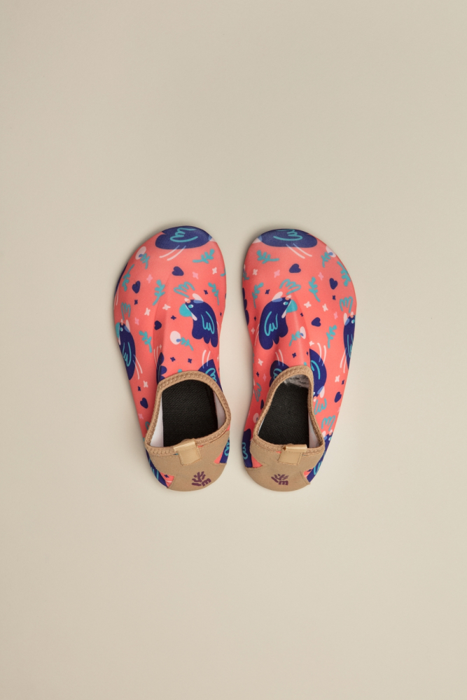 Topánočky by sa nemali kupovať s veľkým nadmerkom nakoľko ide o ponožkový tvar. Mali by sedieť presne, aby sa detičkám nevyzúvali alebo aby ich nestratili vo vode.