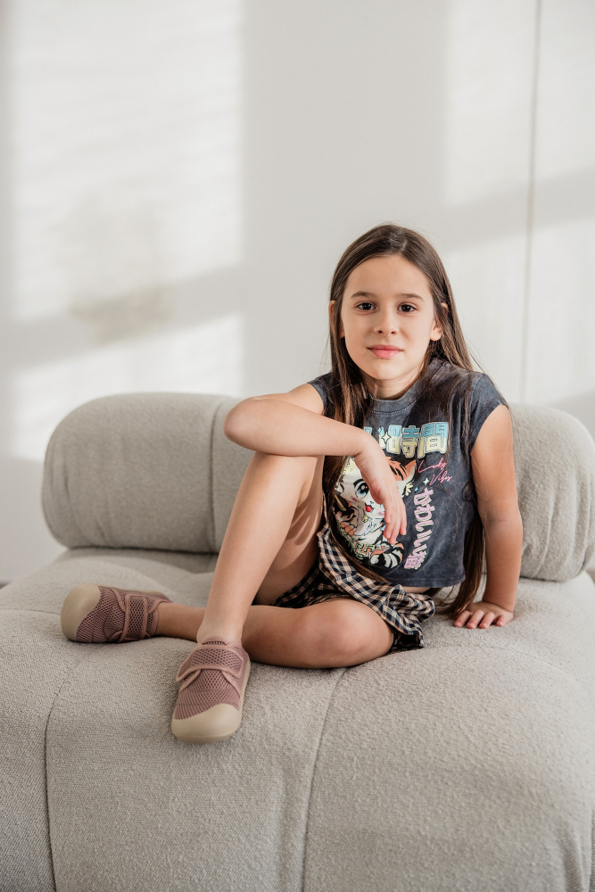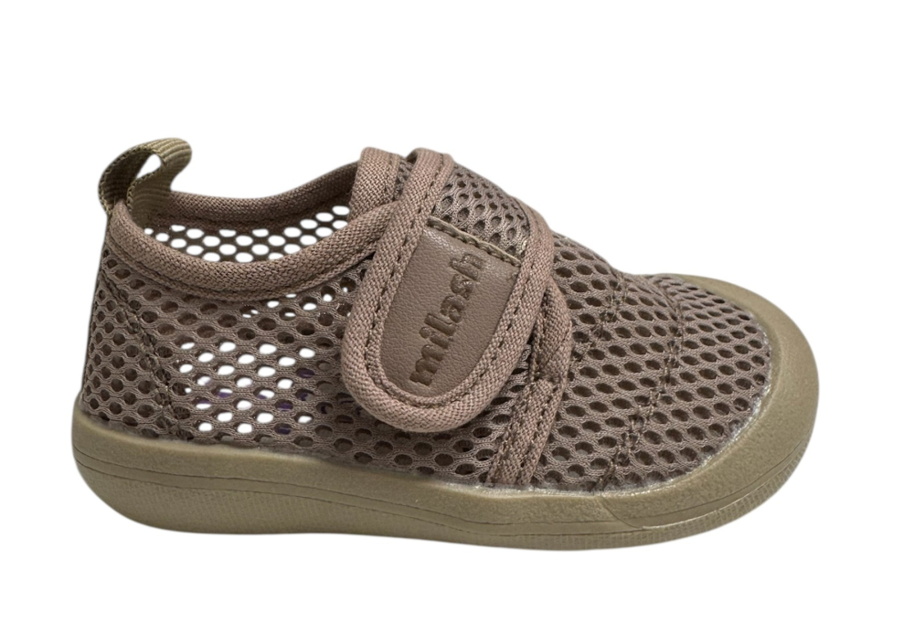 Prievzdušné a ľahučké tenisky od slovenskej značky Milash. Sedia na normálne široké a bacuľaté nôžky a obujú ich aj deti s vyšším priehlavkom. Topánočky sú vyrobené z rýchloschnúcej sieťoviny a ich vnútro je tiež vystlané mäkkou, prievzdušnou textíliou, vďaka čomu môže nôžka v topánke dýchať, čím sa minimalizuje jej potenie. Nachádza sa v nich bavlnená, rovná stielka, ktorá je tiež vyberateľná. Sú veľmi ľahké, ohybné a podrážka poskytuje dostatok miesta pre celú nôžku. Dajú sa pekne utiahnuť suchým zipsom. Päta je mierne spevnená, pekne drží tvar. Topánky majú vyvýšenú pogumovanú špicu, ktorá ich chráni pred okopaním, čím sa maximalizuje ich životnosť.