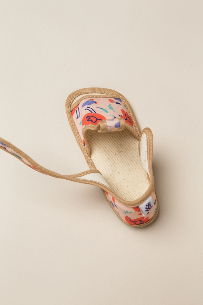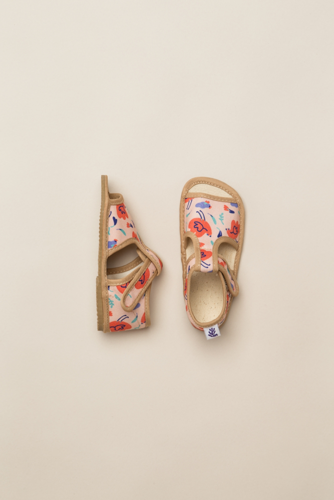 Ortopedické papučky slovenskej značky Milash s otvorenou špičkou. Gumená, protišmyková podrážka je mäkká a ohybná a má tiež menší podpätok na tlmenie nárazov a ochranu kĺbov. Päta je mierne spevnená pre vertikálnu oporu a zdravý vývoj nôžky. Otvorená špička poskytuje dostatok miesta pre prsty. Sú vhodné na užšie a normálne široké nohy a tiež normálne vysoký až nižší priehlavok. Papučky znesú aj mierne dominantný palček. Bavlnená stielka vo vnútri je nevyberateľná, mierne ortopedicky tvarovaná, podporuje klenbu. Zapínajú sa na suchý zips, vďaka čomu sa pekne prispôsobia nôžkam, dajú sa dobre utiahnuť aj na užší členok.