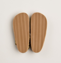 Barefoot papučky slovenskej značky Milash s jemne spevnenou pätou. Gumená, protišmyková podrážka je ohybná pozdĺžne aj priečne a otvorená špička poskytuje dostatok miesta pre prsty. Sú vhodné na užšie a normálne široké nôžky a tiež normálne vysoký priehlavok. Papučky znesú aj mierne dominantný palček. Majú rovnú podrážku bez opätku s nulovým dropom a bavlnená stielka vo vnútri je nevyberateľná, netvarovaná. Zapínajú sa na suchý zips, vďaka čomu sa pekne prispôsobia nôžkam, dajú sa dobre utiahnuť aj na užší členok.