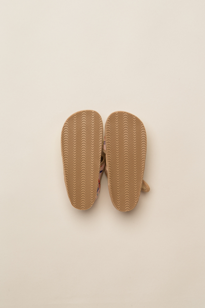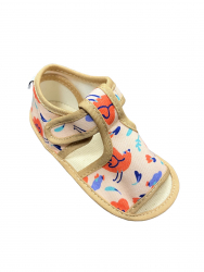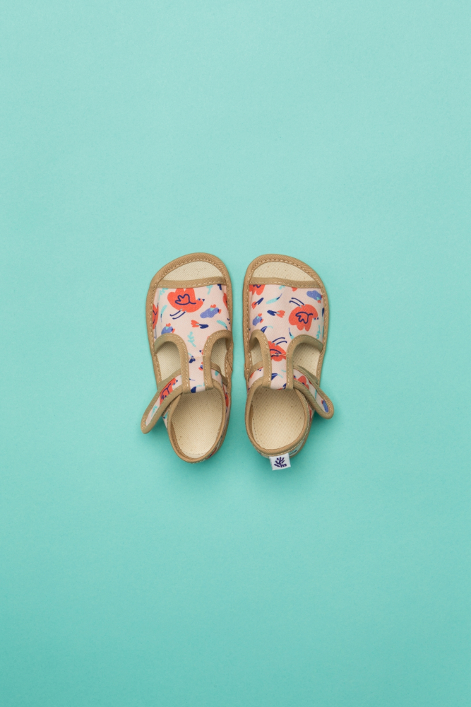 Barefoot papučky slovenskej značky Milash s otvorenou špičkou. Gumená, protišmyková podrážka je ohybná pozdĺžne aj priečne, otvorená špička poskytuje dostatok miesta pre prsty. Sú vhodné na užšie a normálne široké nôžky a tiež normálne vysoký až nižší priehlavok. Papučky znesú aj mierne dominantný palček. Majú rovnú podrážku bez opätku s nulovým dropom a bavlnená stielka vo vnútri je nevyberateľná, netvarovaná. Zapínajú sa na suchý zips, vďaka čomu sa pekne prispôsobia nôžkam, dajú sa dobre utiahnuť aj na užší členok.