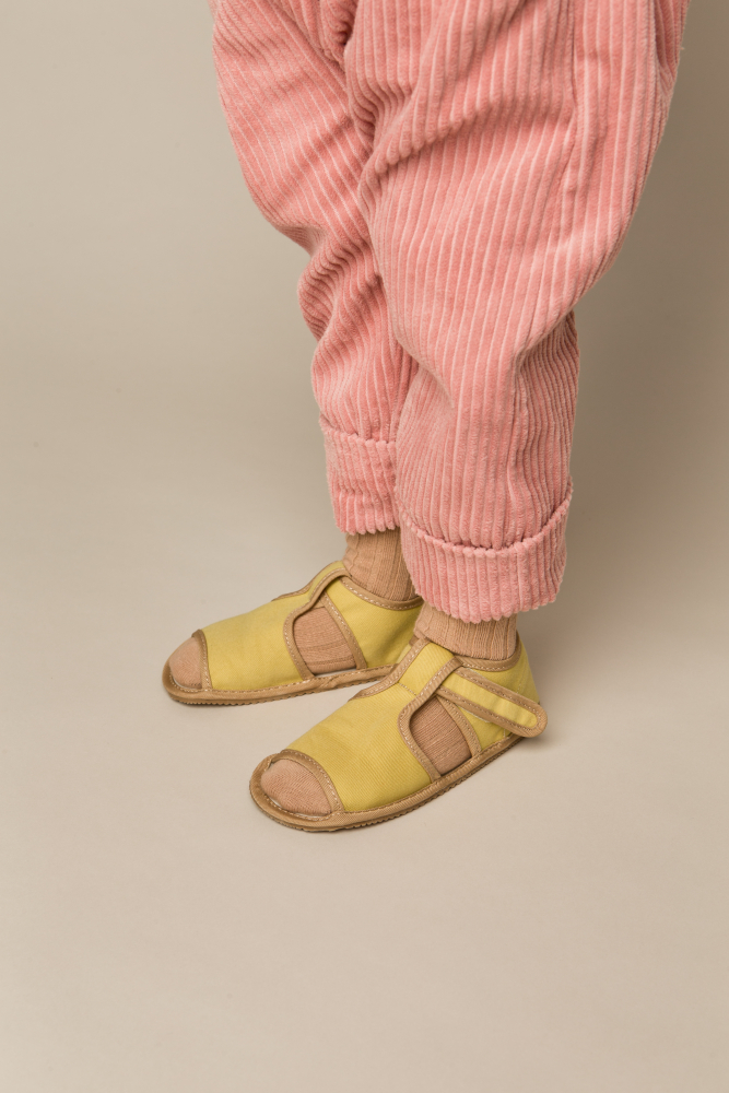 Barefoot papučky slovenskej značky Milash v krásnom jemnom prevedení s mierne spevnenou pätou. Gumená, protišmyková podrážka je ohybná pozdĺžne aj priečne a otvorená špička poskytuje dostatok miesta pre prsty. Sú vhodné na užšie a normálne široké nôžky a tiež normálne vysoký priehlavok. Papučky znesú aj mierne dominantný palček. Majú rovnú podrážku bez opätku s nulovým dropom a bavlnená stielka vo vnútri je nevyberateľná, netvarovaná. Zapínajú sa na suchý zips, vďaka čomu sa pekne prispôsobia nôžkam, dajú sa dobre utiahnuť aj na užší členok.
