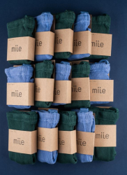 Detské pančuchové nohavice od slovenskej značky Mile v retro prevedení s elastickými trakmi. Sú vyrobené z najjemnejšej česanej bavlny pôvodom z EÚ, doplnené jemným polyamidom, vďaka ktorému držia tvar a neprederavia sa. Polyamidové vlákno je vpletené medzi dve bavlnky, aby nedochádzalo ku kontaktu s detskou pokožkou, preto sú vhodné aj pre citlivú ekzematickú pokožku detičiek. Pančušky sú farbené certifikovanými švajčiarskymi farbami. V páse majú gumičku, ktorá sa dá cez malý otvor regulovať (viď. foto.) podľa potreby každého unikátneho bruška.