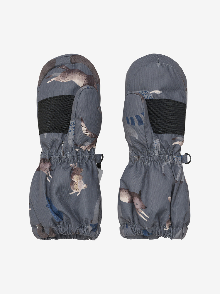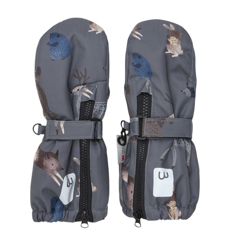 Teplé našuchovacie palčiaky od značky Minymo z priedušného, vetruvzdorného a vodeodolného materiálu s vodným stĺpcom až 10.000 mm. Povrchová úprava bionic finish eco je odolná voči oderu. Rukavice sú podšité jemným flisom, vďaka čomu udržia ruky v teple a majú tiež zosilnenú pogumovanú vrstvu na končekoch prstov a na dlaniach. Rukavice majú na prednej strane reflexné prvky a z bočnej strany praktické plastové klipy, takže sa dajú k sebe pripnúť a detičky ich tak nestratia. Taktiež majú rukavice na boku zips, ktorým sa rukavičky zapínajú. Tento zips je možné upevniť i suchým zipsom.