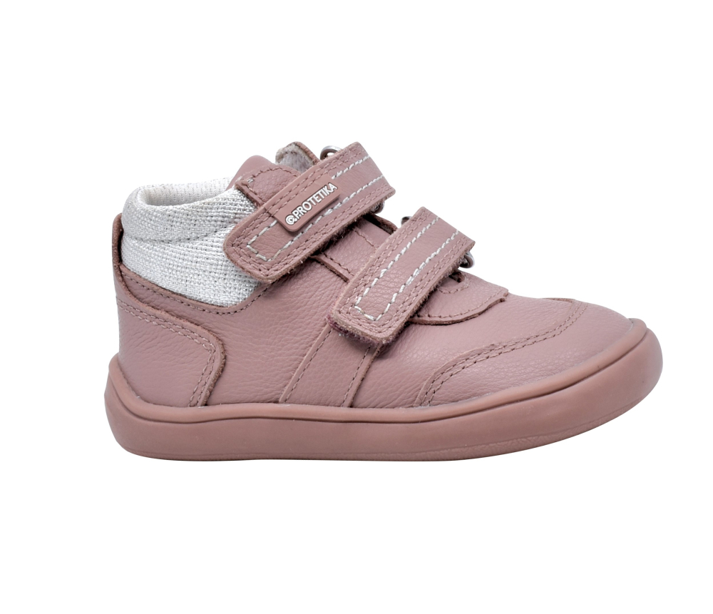 Barefootové vyššie topánky od značky Protetika s vylepšenou podrážkou. Vďaka nej sú topánočky flexibilné, ohybné v oboch smeroch, pozdĺžne aj priečne. Sú ľahké a poskytujú dostatočný priestor pre prsty. Špica je anatomicky tvarovaná, vhodná aj pre dominantný palček. Sedia na normálne široké nôžky a znesú aj vyšší priehlavok. Nohy v topánkach upevňujú dva suché zipsy, ktoré sa dajú pekne pritiahnuť ku členkom, čo je výhodou najmä pre detičky s užšími členkami. Vnútro topánok je vystlané mäkkou, prievzdušnou textíliou. Vyberateľná stielka je kožená, netvarovaná. Topánky majú vyvýšenú pogumovanú špicu a pätu, ktorá ich chráni pred okopaním, čím sa predlžuje ich životnosť. Údržba je jednoduchá, pri ušpinení stačí očistiť jemnou kefkou a opäť naimpregnovať.