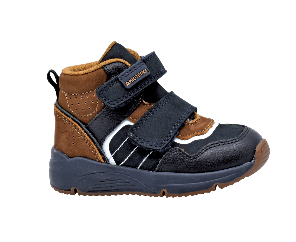 Kožené tenisky od značky Protetika s pohodlnou podrážkou na mierne vyvýšenej platforme. Sedia na normálne široké nôžky a obujú ich aj deti s mierne vyšším priehlavkom. Topánočky sú pevné, fixujú členok a majú tiež spevnenú pätu. Nachádza sa v nich kožená, vyberateľná stielka, ktorá má ortopedicky tvarovanú klenbu. Dajú sa pekne utiahnuť dvoma suchými zipsami a prispôsobiť tak nôžkam. Vnútro topánok je vystlané mäkkou, prievzdušnou textíliou. Údržba a starostlivosť o topánky je jednoduchá, pri ušpinení stačí očistiť jemnou kefkou alebo pretrieť vlhkou handričkou a naimpregnovať.
