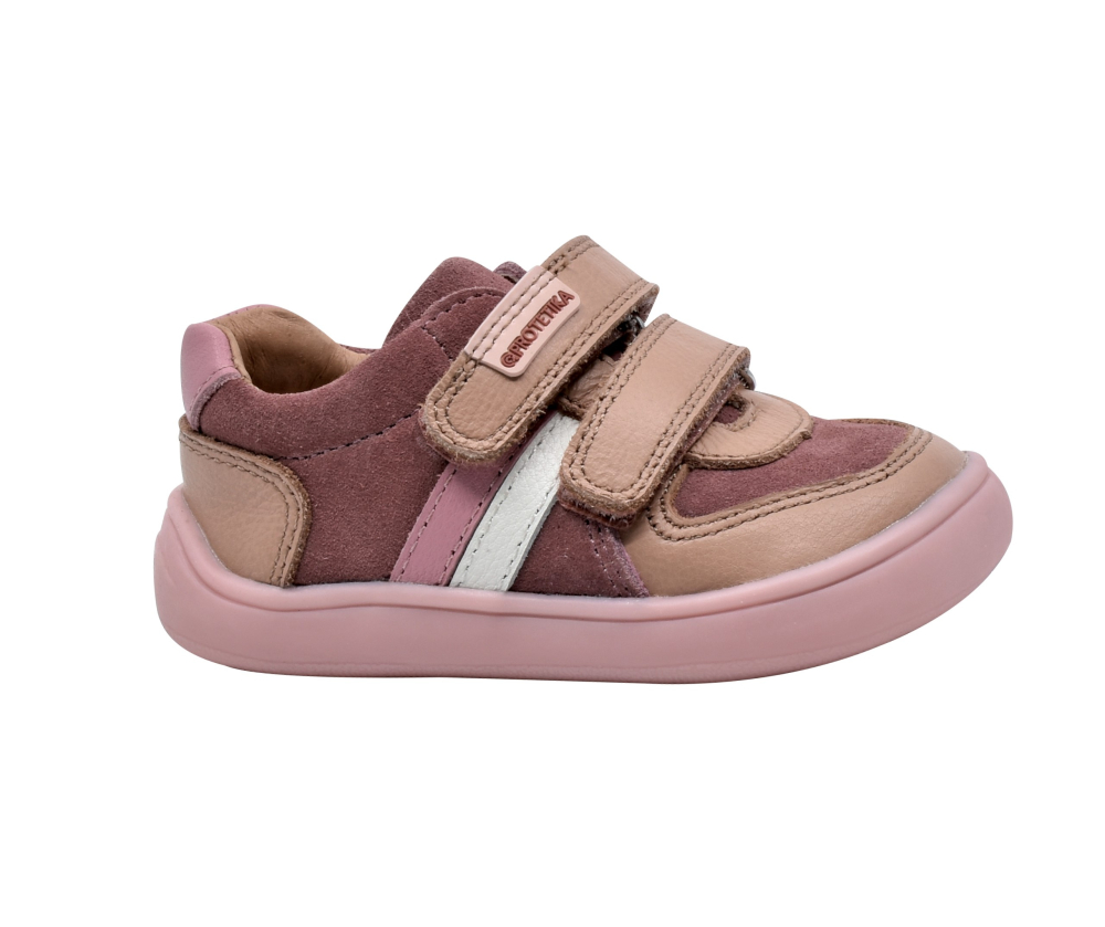 Barefootové celokožené topánky od značky Protetika s novou vylepšenou podrážkou. Vďaka nej sú topánočky flexibilné, ohybné v oboch smeroch, pozdĺžne aj priečne. Sú ľahké a poskytujú dostatočný priestor pre prsty. Špica je anatomicky tvarovaná, vhodná aj pre dominantný palček. Sedia na normálne široké nôžky a znesú aj vyšší priehlavok. Nohy v topánkach upevňujú dva suché zipsy, ktoré sa dajú pekne pritiahnuť ku členkom. Topánky majú vyvýšenú pogumovanú špicu a pätu, ktorá ich chráni pred okopaním, čím sa predlžuje ich životnosť. Údržba je jednoduchá, pri ušpinení stačí očistiť jemnou kefkou a opäť naimpregnovať.