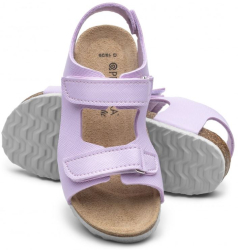 Rehabilitačné sandále značky Protetika s novým zapínaním so zdravotnými prvkami. Sú ideálne pri prevencii plochých nôh, pretože majú anatomicky tvarovanú stielku, ktorá pôsobí preventívne aj terapeuticky pri podpore klenby chodidla. Pätu v správnom postavení stabilizuje pätové lôžko, ktoré zmierňuje otrasy pri chôdzi a zabraňuje vybočeniu päty. Lôžko na prsty posilňuje ohýbače prstov, hlavne palca a klenba so srdiečkom zabraňuje padnutiu klenby a tvorbe plochej nohy. Vzhľadom na rozšírenie plochých nožičiek u školopoviných detí sú ortopedické sandálky skvelou voľbou prezuviek do školy a škôlky. Sú vhodné ako papučky, ale aj ako bežná vychádzková obuv. Sú priestranné v prstovej časti a vďaka praktickému zapínaniu sa prispôsobia aj užším členkom. Podošva je pevná a protišmyková. Anatomicky tvarovaný výlisok obsahuje prírodný korok.