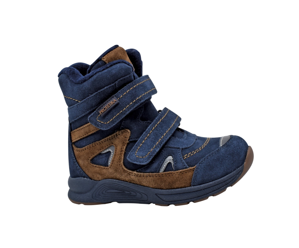 Celokožené, vyššie čižmičky od značky Protetika. Sedia na normálne široké nôžky. Vo vnútri majú vyberateľnú, zateplenú stielku, ktorá je ortopedicky tvarovaná. Dajú sa pekne utiahnuť dvoma suchými zipsami a prispôsobiť tak nôžkam, čo je výhodou aj pre detičky s užšími členkami. Sú zateplené veľmi príjemnou, hrejivou kožušinkou, ktorá udrží nôžky v teple a pohodlí . Starostlivosť a údržba topánočiek je jednoduchá, stačí ich impregnovať.