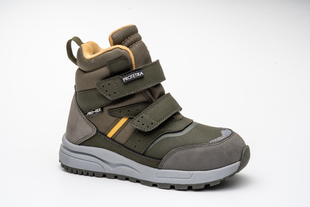 Celokožené, vyššie čižmičky od značky Protetika s nepremokavou Pro-tex membránou. Pro-tex membrána chráni nôžky v topánkach pred dažďom, snehom a vlhkosťou, bez nutnosti impregnácie. Sedia na normálne široké nôžky. Vo vnútri majú vyberateľnú, zateplenú stielku, ktorá je ortopedicky tvarovaná. Dajú sa pekne utiahnuť dvoma suchými zipsami a prispôsobiť tak nôžkam, čo je výhodou aj pre detičky s užšími členkami. Sú zateplené veľmi príjemnou, hrejivou kožušinkou, ktorá udrží nôžky v teple a pohodlí. Údržba a starostlivosť je jednoduchá, pri ušpinení stačí šetrne čistiť. Ak by ste sa predsa len rozhodli ich naimpregnovať, pre jednoduchšiu údržbu a ochranu pred zašpinením, tak použite impregnačný prostriedok určený na membrány. Výhodou je aj vyvýšená pogumovaná špica, ktorá zabraňuje okopaniu a predlžuje tak životnosť topánok.