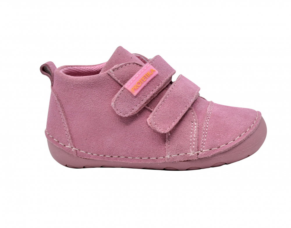 Kožené barefootové topánky od značky Protetika. Vďaka flexibilnej podrážke sú topánočky ohybné v oboch smeroch, pozdĺžne aj priečne. Sú ľahké a poskytujú dostatočný priestor pre prsty. Špica je anatomicky tvarovaná, vhodná aj pre dominantný palček. Sedia skôr na širšie, bacuľaté nôžky. Obujú ich detičky s vysokým priehlavkom, širokou pätou alebo širokým členkom. Sú vhodné aj ako topánočky na prvé kroky, pretože sú veľmi pohodlné a mäkké. Nohu uťahujú dva suché zipsy, ktoré sa pekne prispôsobia členkom. Vo väčších veľkostiach nie sú vhodné pre deti s príliš úzkymi členkami, pretože ich nedokážu dostatočne obopnúť. Topánky majú vyvýšenú pogumovanú špicu a pätu, ktorá ich chráni pred okopaním, čím sa predlžuje ich životnosť. Údržba je jednoduchá, pri ušpinení stačí očistiť jemnou kefkou a počas sychravých dní topánočky impregnovať prípravkami vhodnými pre brúsenú kožu.