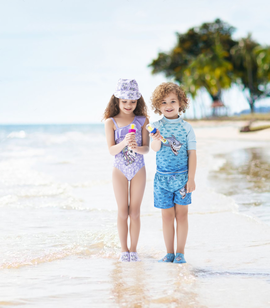 Rýchloschnúce detské plavky s UPF ochranou pred slnkom až 50+ od značky SlipStop, vďaka ktorým je pokožka detí chránená aj pri kúpaní. Jemný, plavkový materiál je pohodlný na nosenie. Šortky sú ľahučké a ani po namočení detičky nezaťažujú, môžu sa tak bezpečne a nerušene hrať vo vode. Plavky je možné nakombinovať aj s UV čiapkou, tričkom alebo tiež SlipStop topánočkami do vody, ktoré máme v ponuke. Starostlivosť a údržba je jednoduchá, plavky treba prať prevrátené v práčke pri 30°C alebo ručne, nesušiť v sušičke a nežehliť.